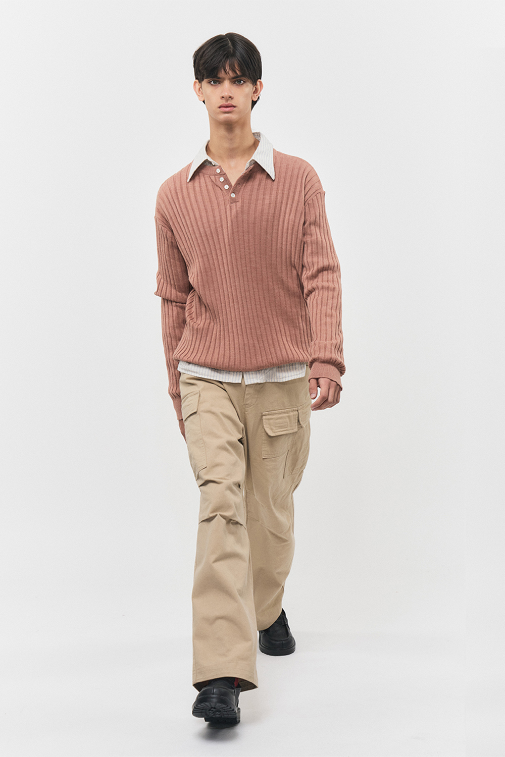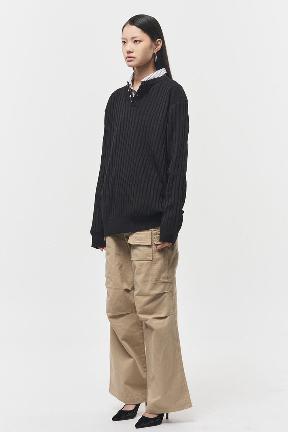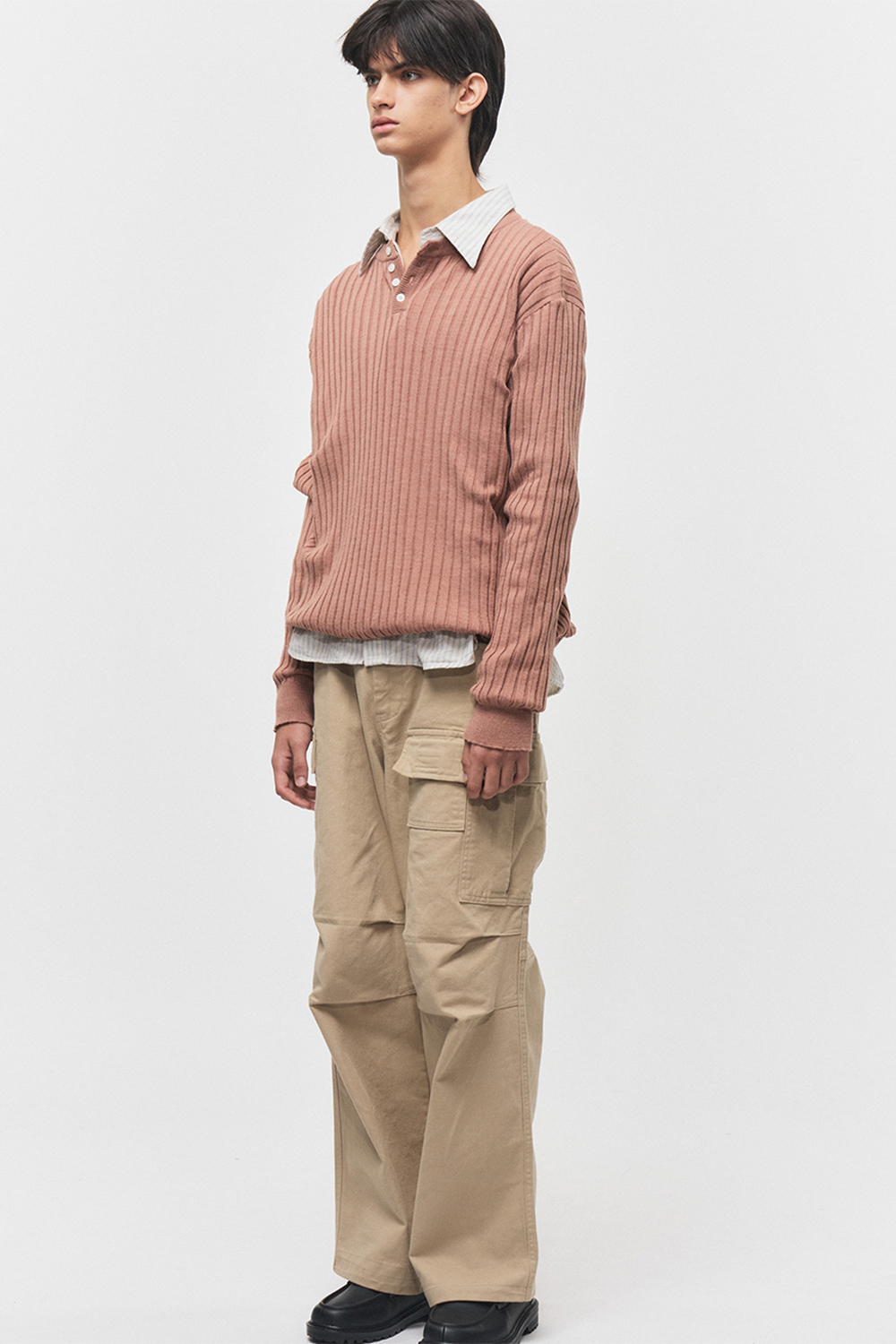 블루 선플라워 세미 와이드 워시드 카고 팬츠