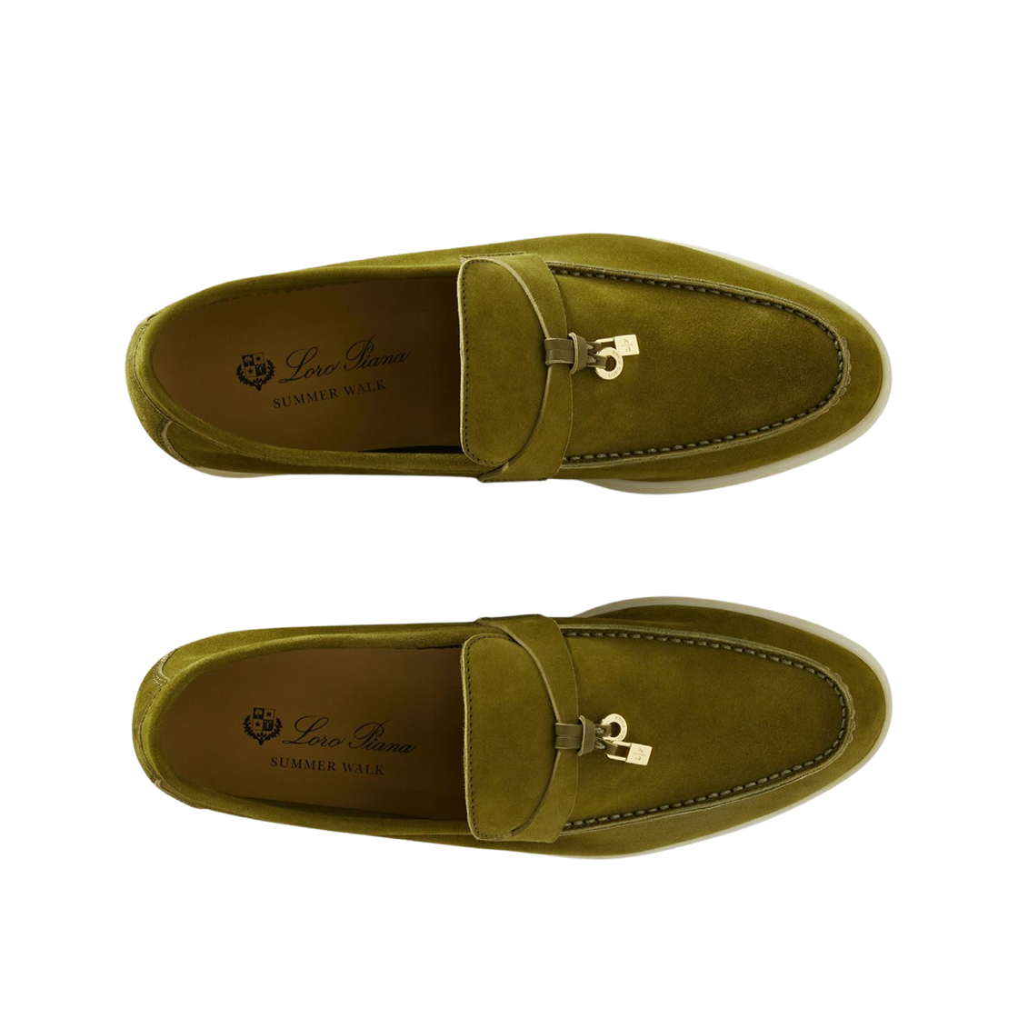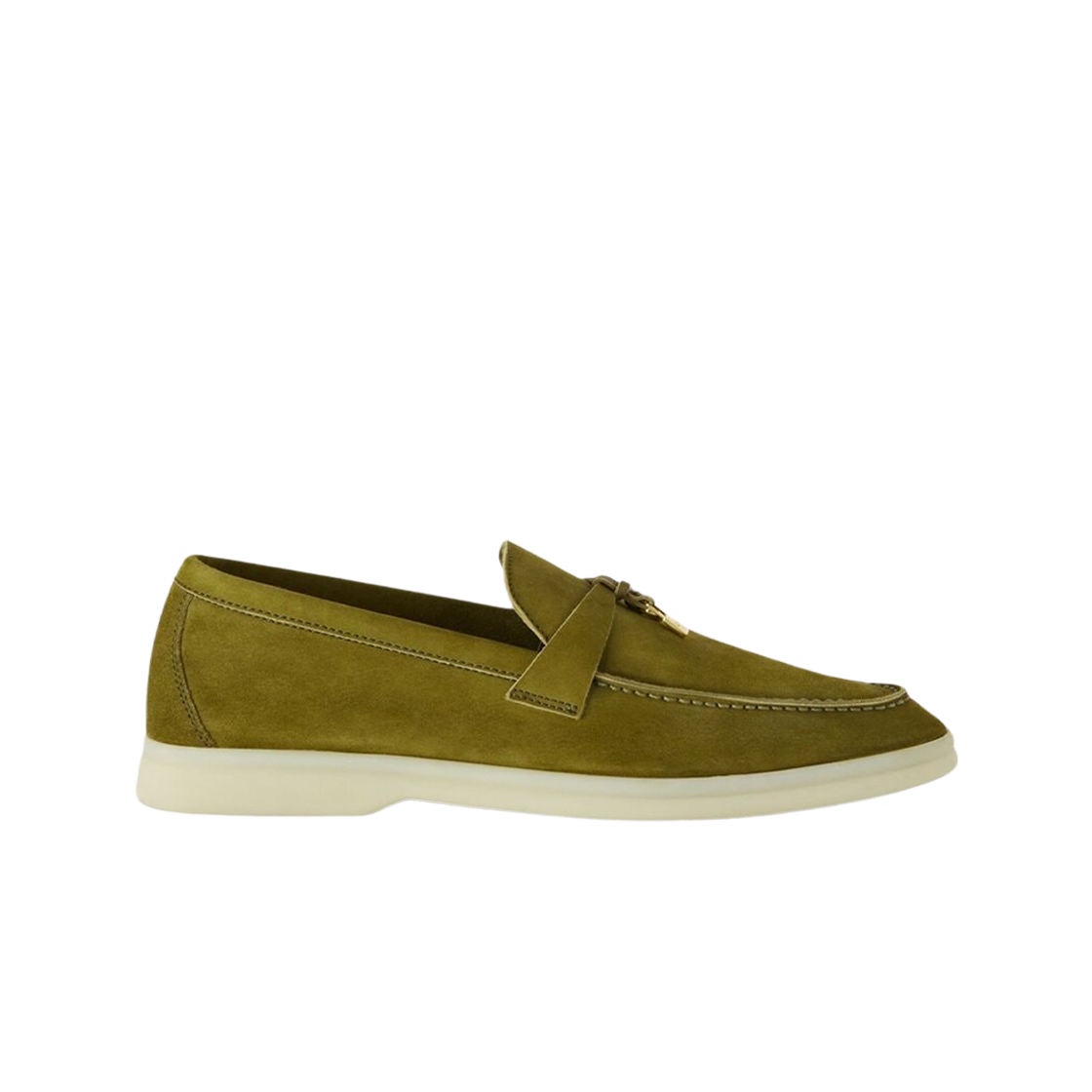 (W) Loro Piana Summer Charms Walk Suede Calfskin Loafers Olive Leaf
