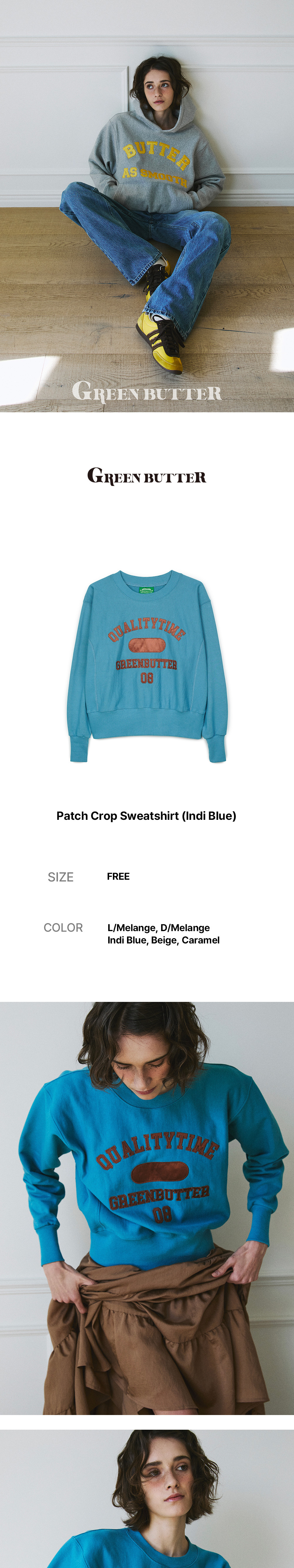 그린버터 패치 크롭 스웻셔츠 인디 블루