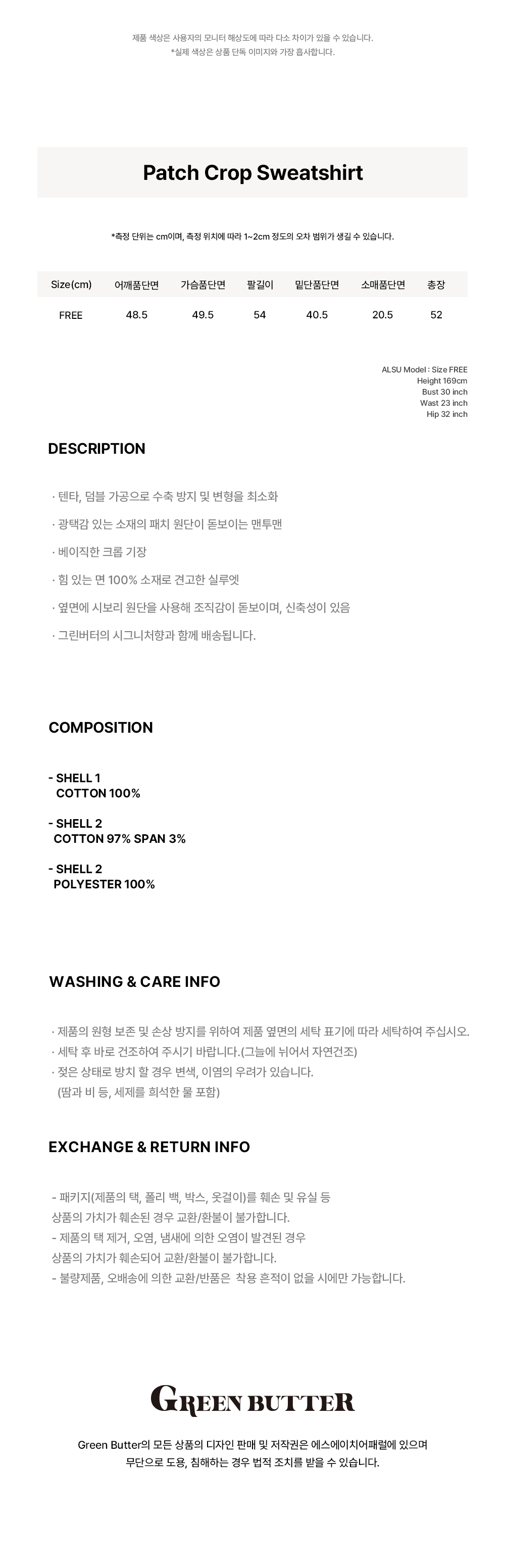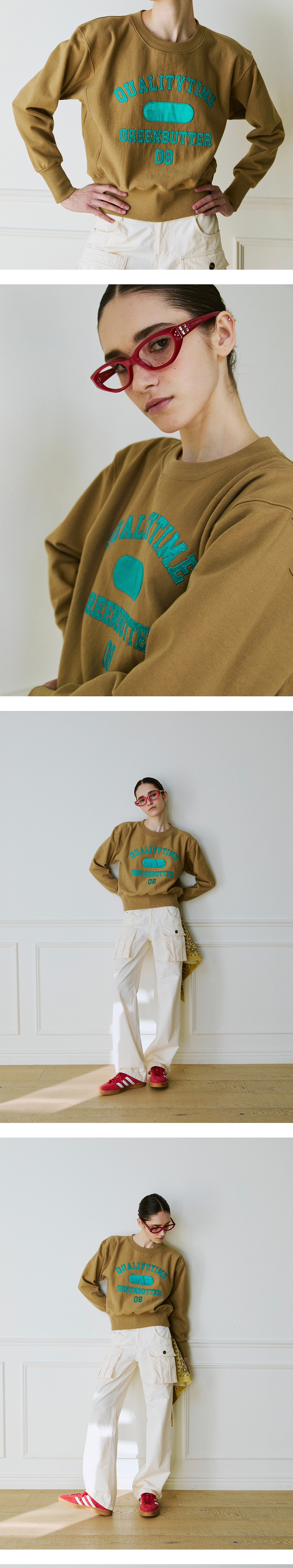 그린버터 패치 크롭 스웻셔츠 카라멜