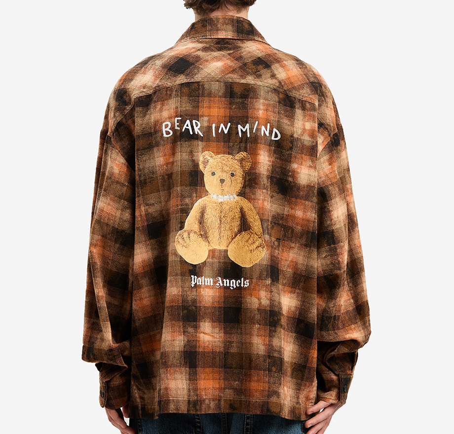 PALM ANGELS Bear In Mind Check Shirt Ls Orange