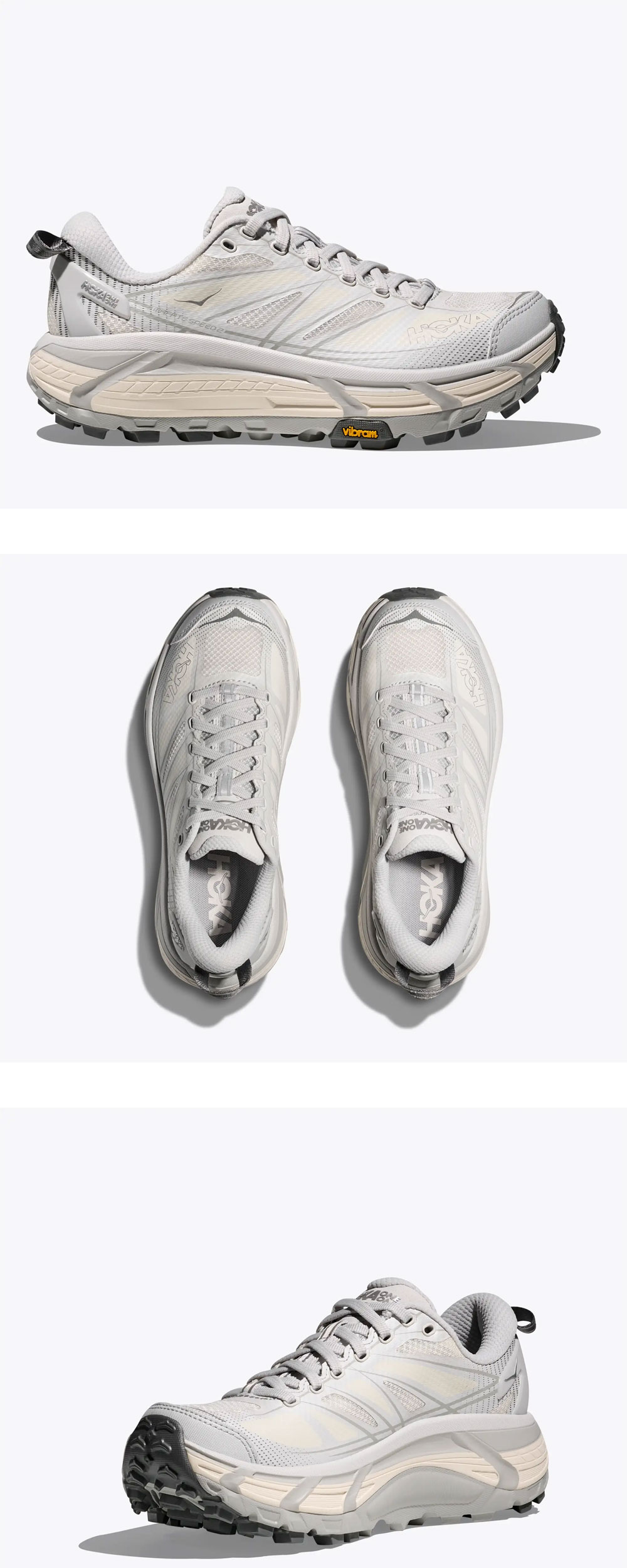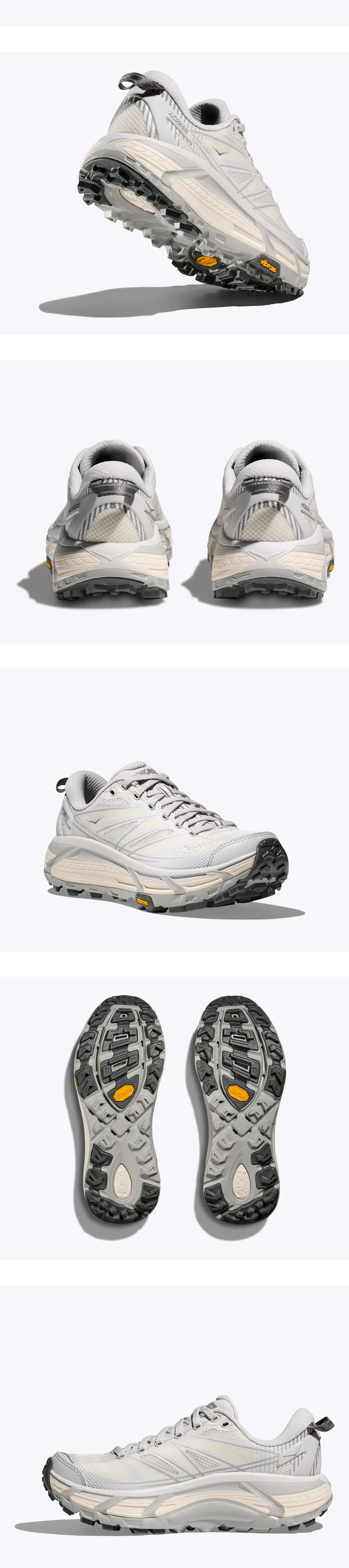 어떤 지형에서도 편안한 착화감을 자랑하는 Hoka의 Mafate Speed 2 Cosmic Grey Alabaster입니다. -아웃도어 활동 뿐만 아니라 일상에서도 활용 가능한 깔끔한 디자인 -보행 사이클 전환에 특화된 meta-rocker 사용 -5mm Vibram Mega-Grip tread -장거리/장시간 활동에도 편안한 착화감을 제공하는 쿠셔닝 디테일