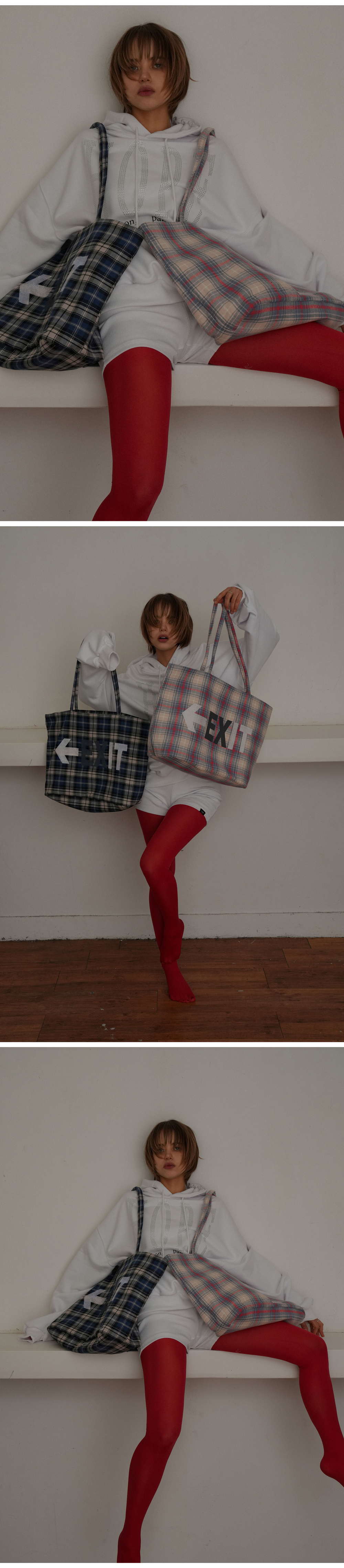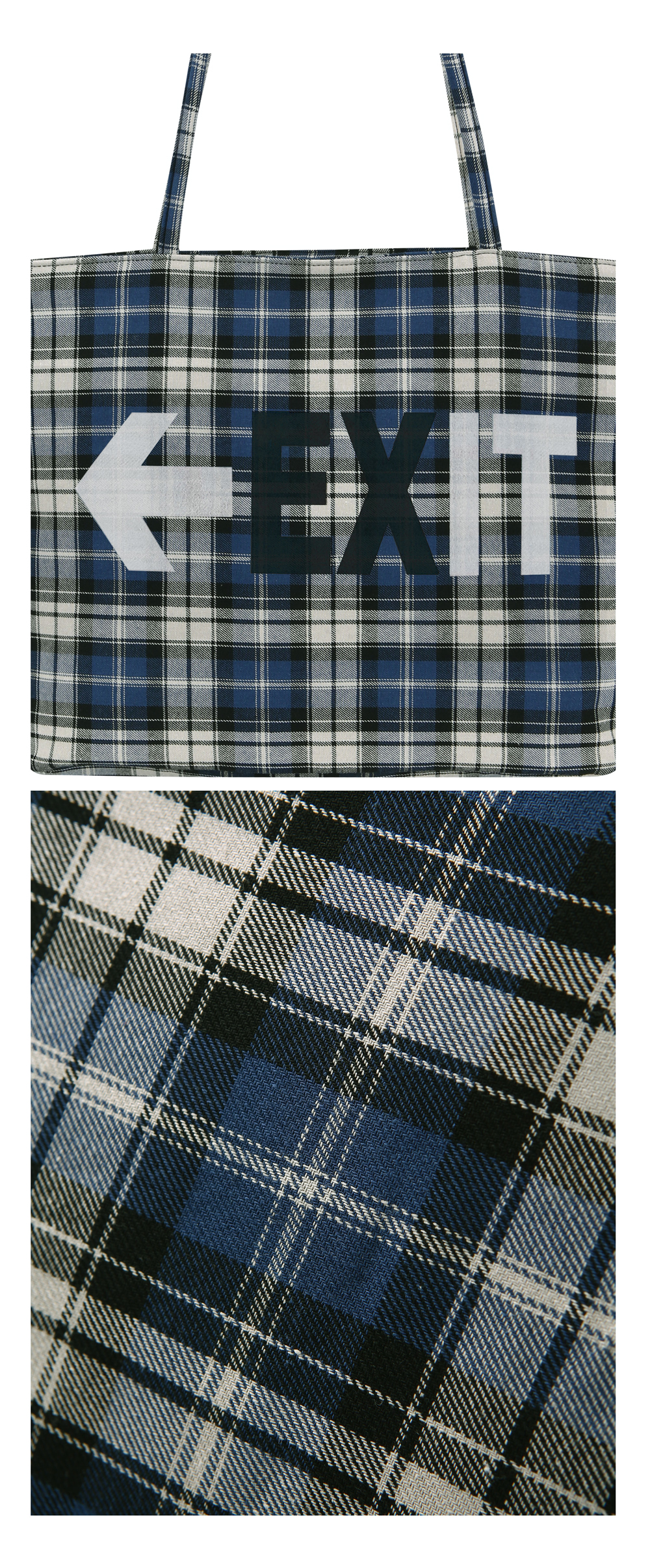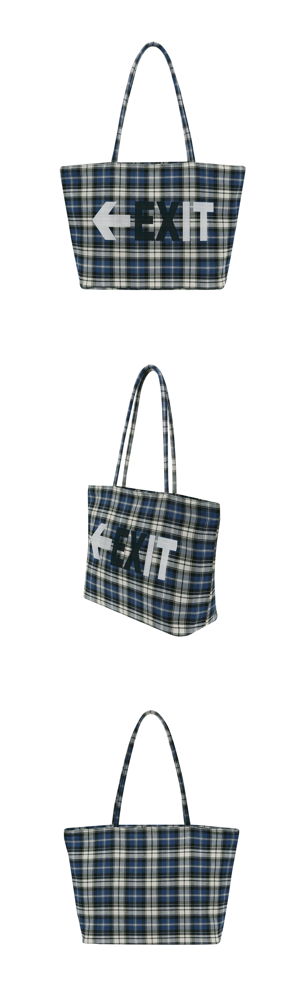 그레일즈 체커드 토트 백 블루