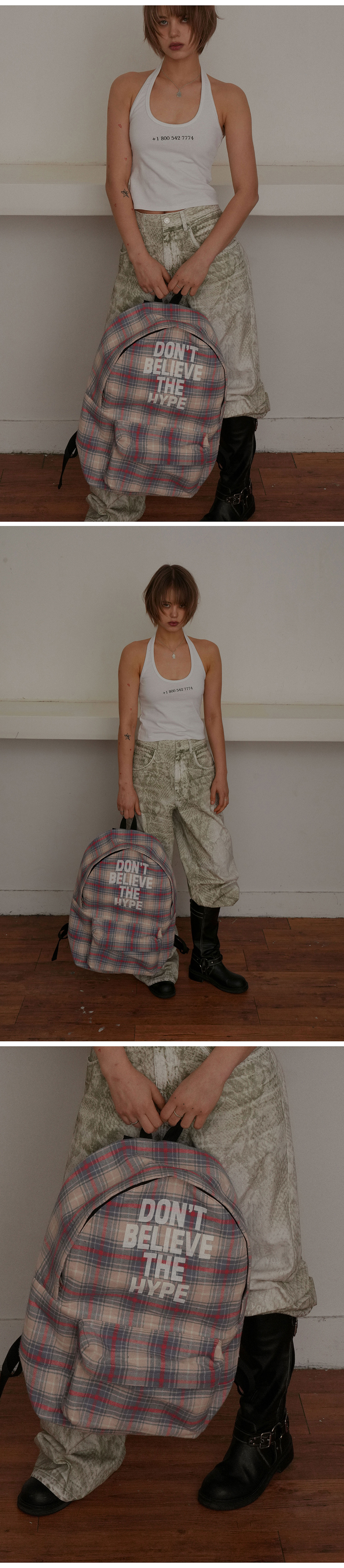 그레일즈 체커드 백팩 핑크