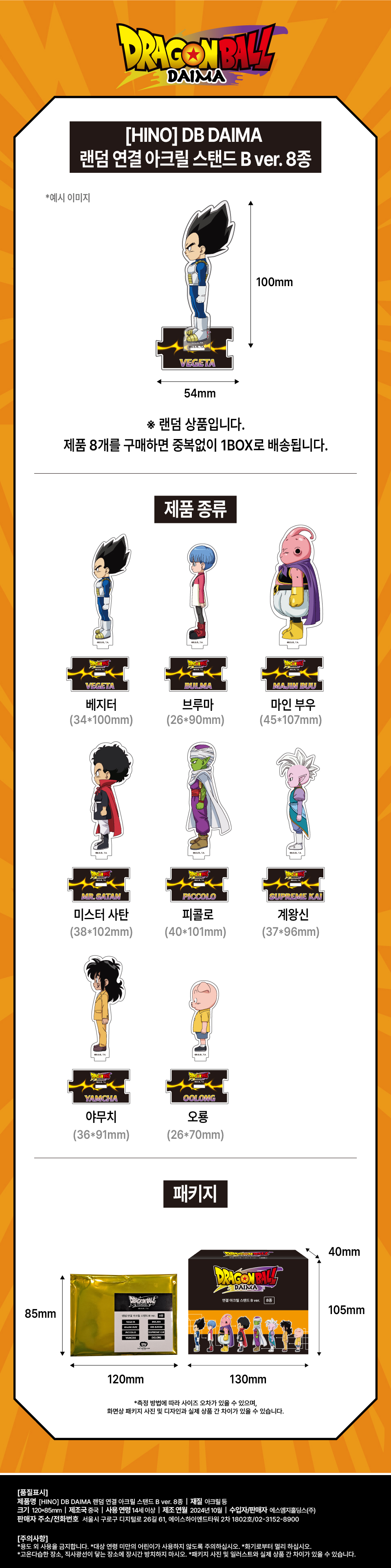 드래곤볼 DB DAIMA 랜덤 연결 아크릴 스탠드 B ver. 8종