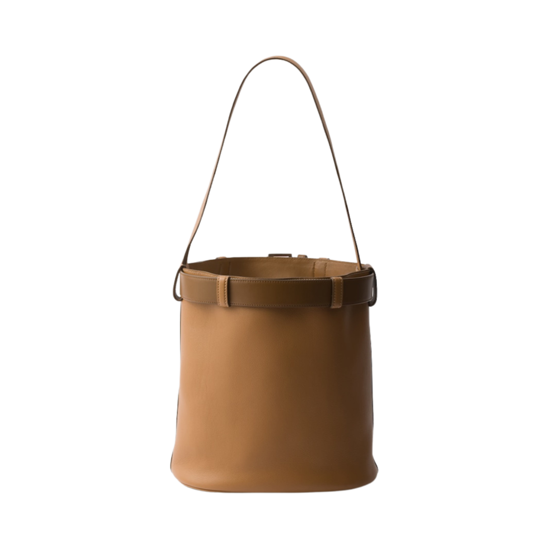 프라다 버클 레더 버킷백 벨트 캐러멜