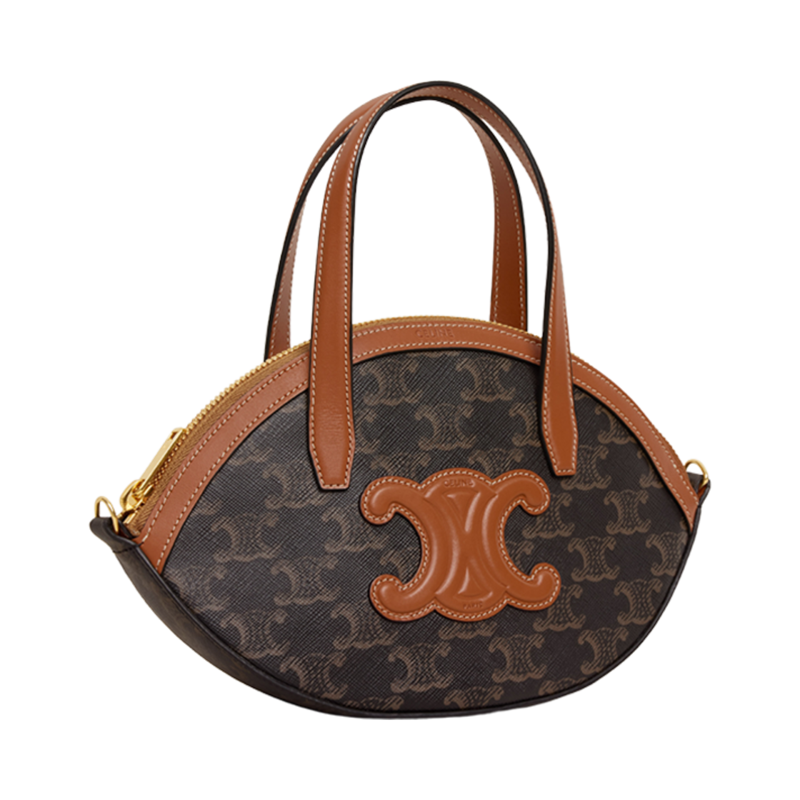 셀린느 오발 백 트리옹프 캔버스 카프스킨 탄