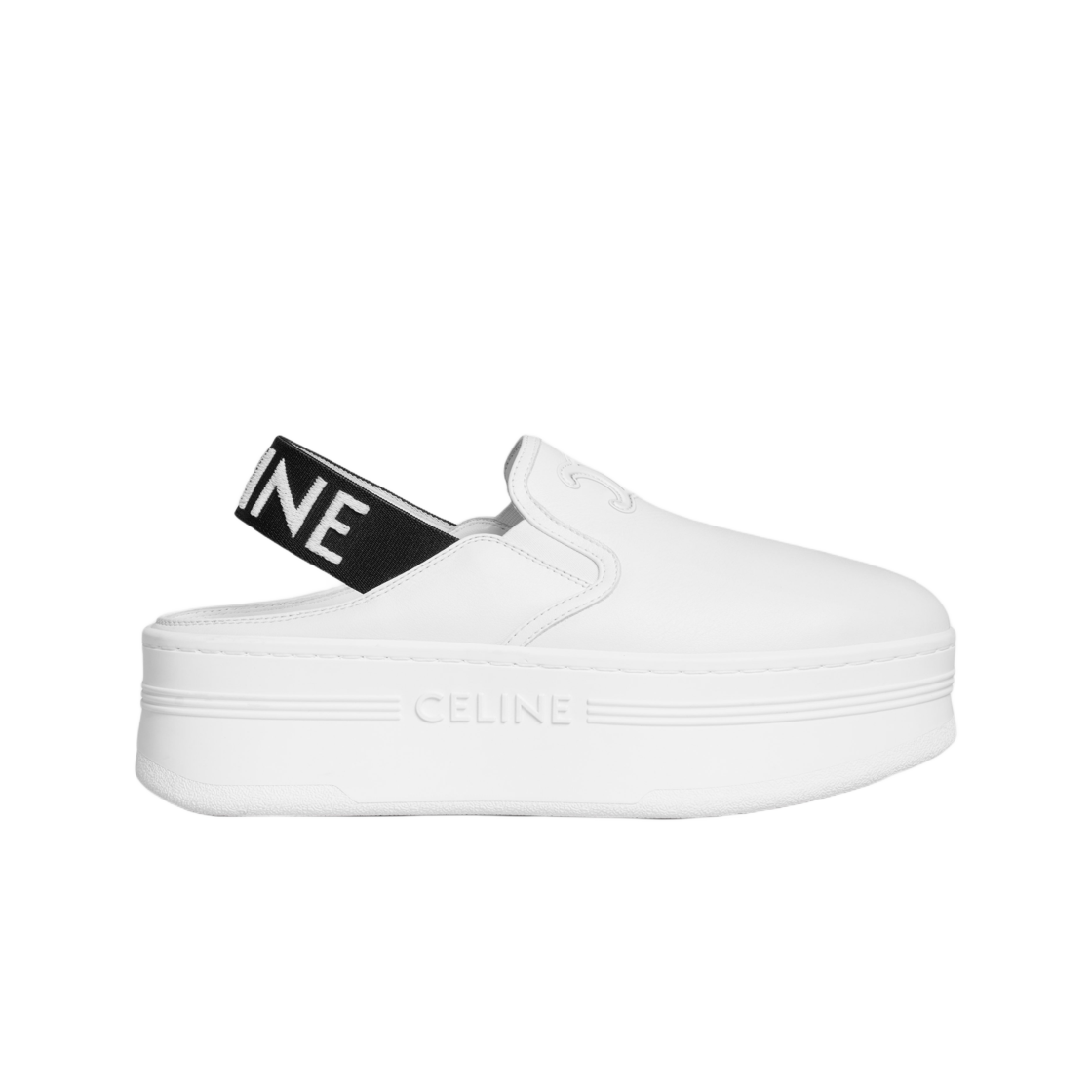 (W) 셀린느 블록 웨지 뮬 카프스킨 텍스타일 셀린느 자카드 옵틱 화이트 블랙