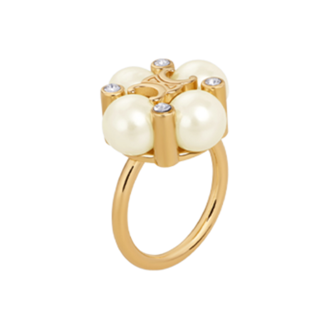 (W) Celine Les Perles Celine Ring in Strass Resin Pearls and Brass with Gold Finish Gold Ivory