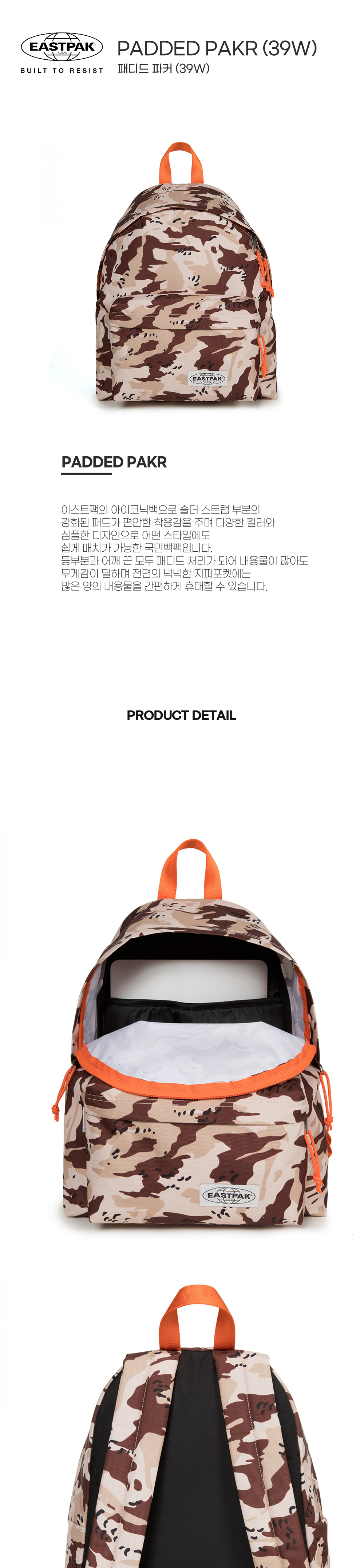 이스트팩 패디드파커 카모 디져트