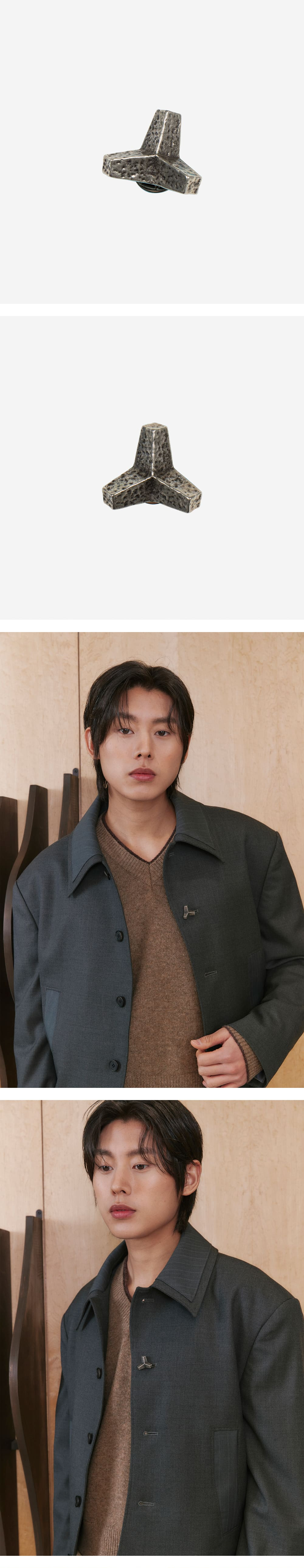 - 시즌 테마인 밀물과 썰물에 영감을 받은 방파제 실루엣의 브로치 - 밀물과 썰물의 시간에 영향을 받은 방파제의 부식된 디테일 - Outshell Zinc 100% - SIZE 25mm x 25mm