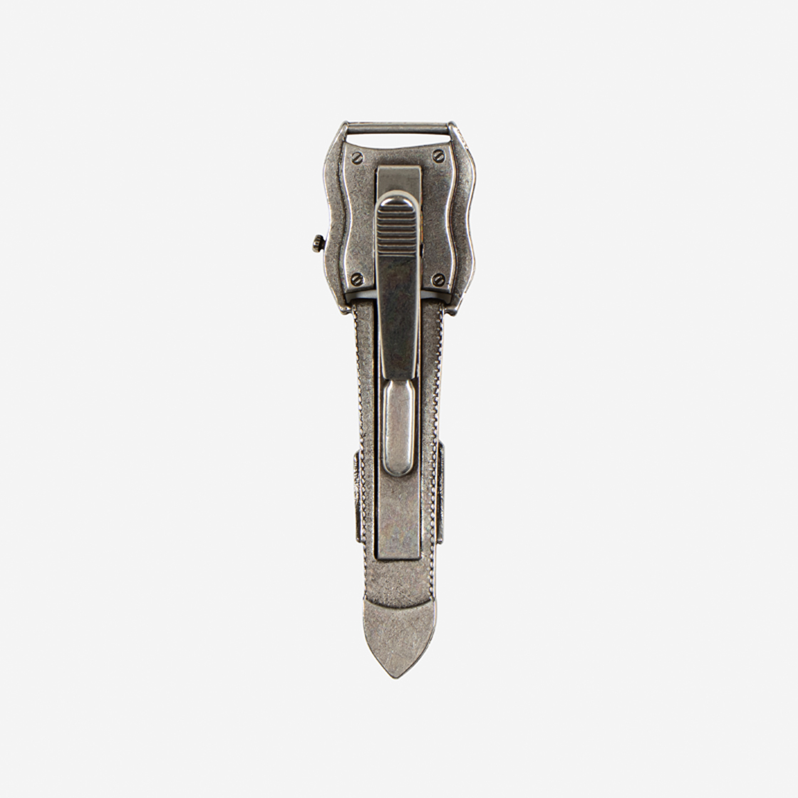 - 웨이비니스 시즌테마의 주축이었던 '시간'을 주제로 한 손목시계 모양의 타이핀 디자인 - 타이핀과 아웃포켓에 탈부착하는 형태의 브로치로서의 활용가능 - C사의 TA******** 오마주 디자인 - Outshell Zinc 100% - SIZE 22mm x 77.6mm