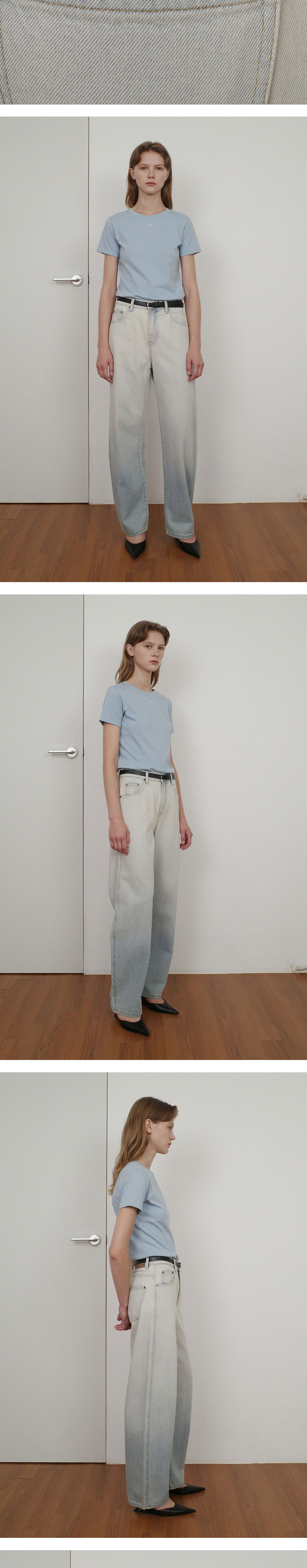 -자연스럽게 떨어지는 세미 오버핏의 데님 팬츠입니다. -밑단에서 살짝 잡아주는 핏이 매력적인 실루엣의 커브진 입니다. -컬러감이 돋보이는 그라데이션 워싱이 매력적인 디자인입니다. -YKK 지퍼를 사용하여 견고함을 더했습니다 -로고가 각인된 캔톤 스냅 단추와 택션지 라벨로 마무리하였습니다.