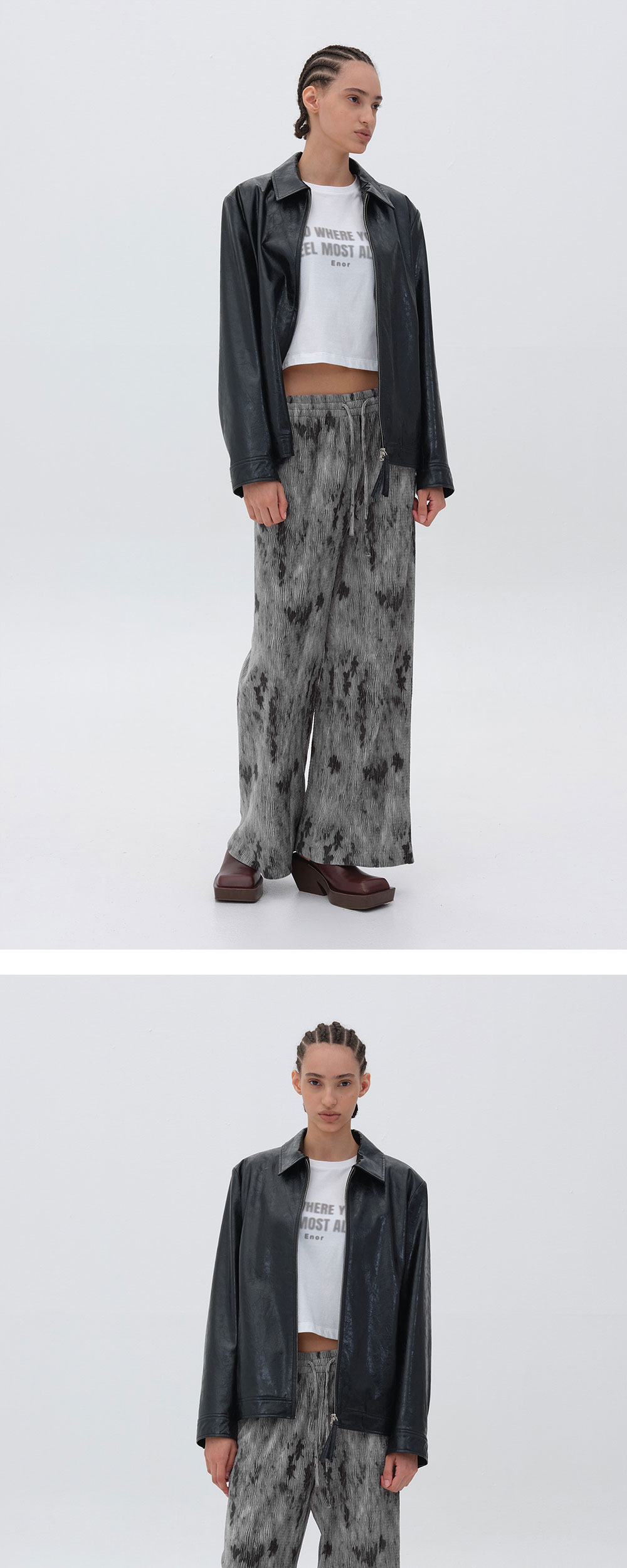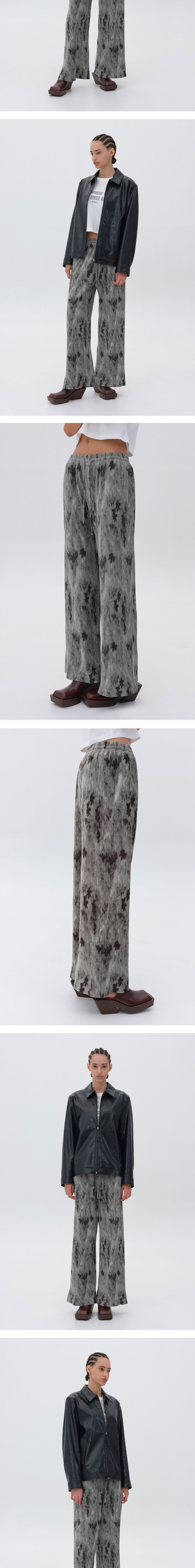 - 내추럴한 컬러감과 독특한 비정형 패턴이 매력적인 팬츠입니다. - 투톤의 불규칙한 플리츠 원단으로 캐주얼한 포인트를 더했습니다. - 따듯하고 부드러운 촉감의 벨루어 소재로 제작된 밴딩 팬츠로 허리에 제원단 스트링으로 사이즈 조절이 가능합니다. - 밴딩 디테일과 와이드한 스트레이트 핏으로 편안한 착용감을 선사합니다.