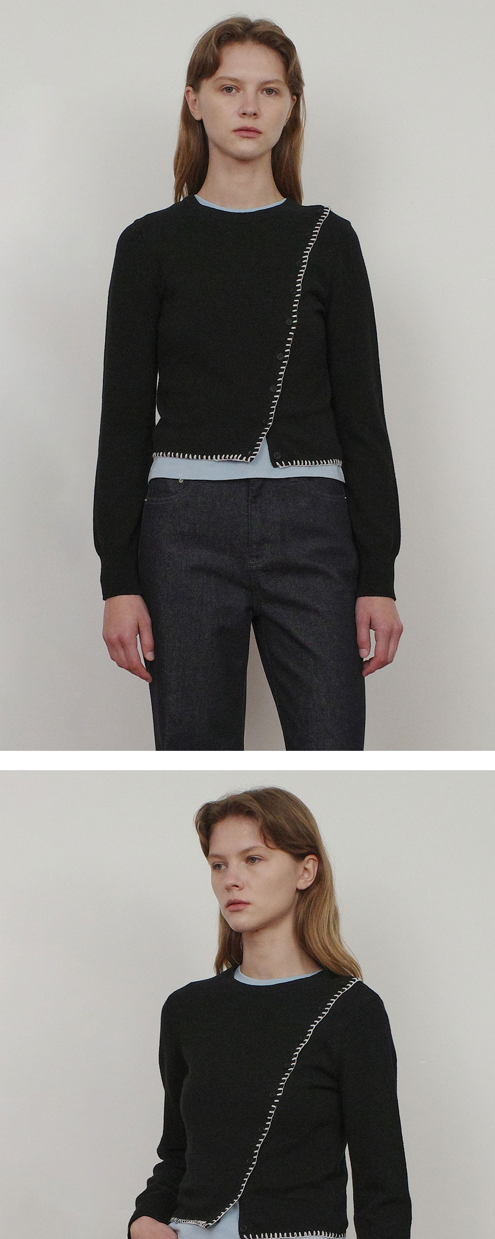 엔오르 우먼 다이애그널 버튼 니트 블랙