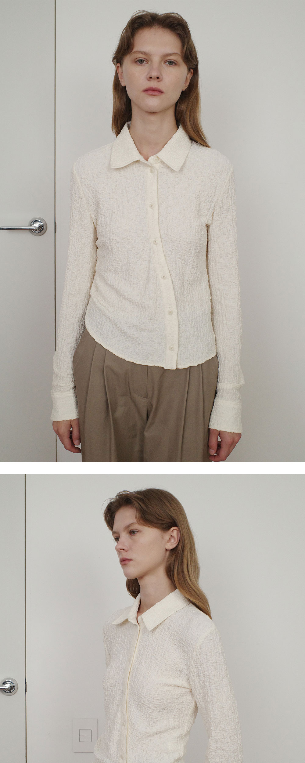 엔오르 우먼 언발란스 링클 셔츠 크림