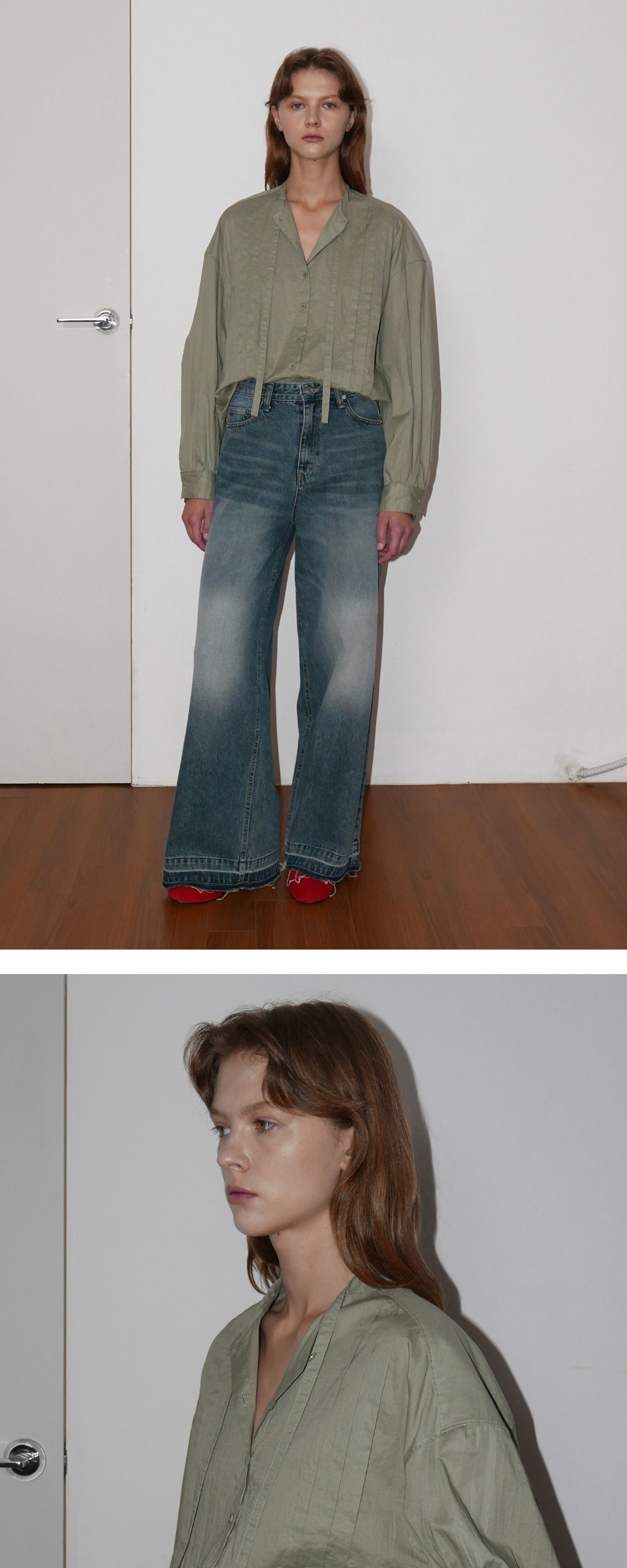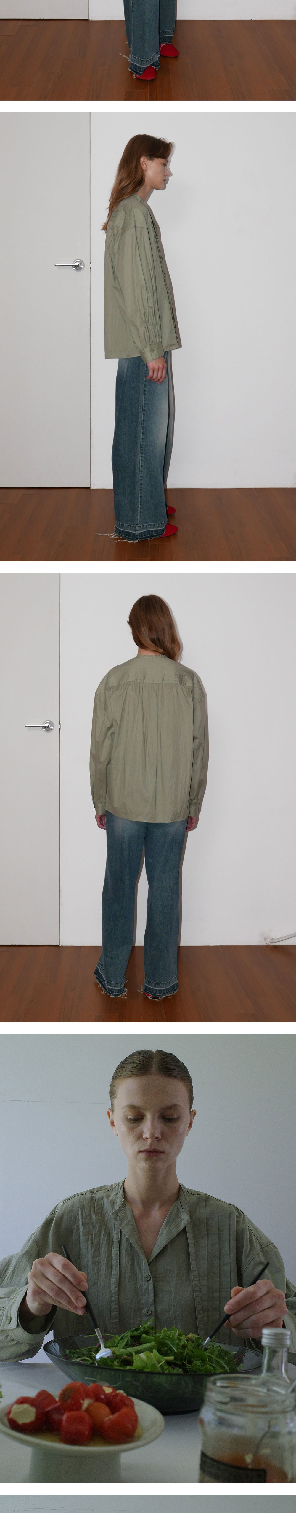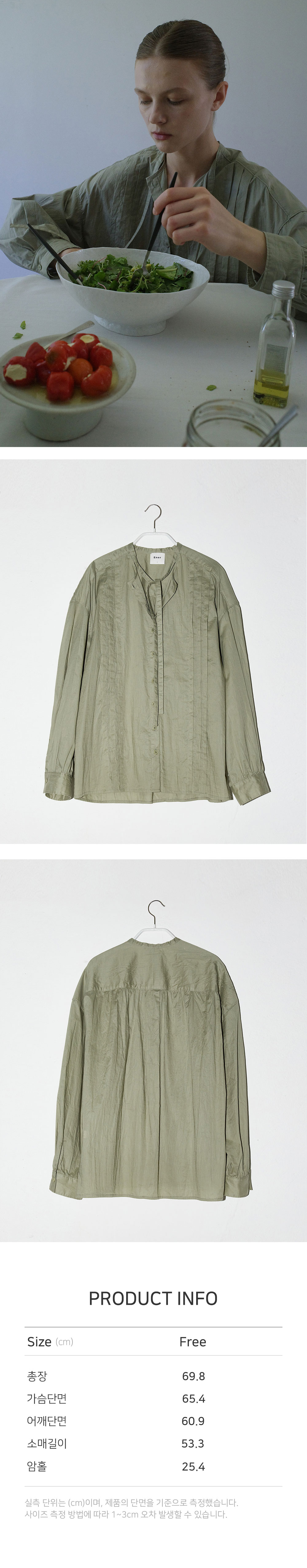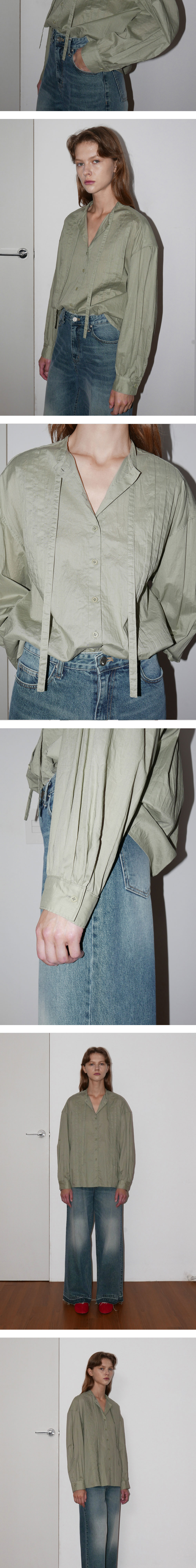 -주름이 매력적인 페미닌한 셔링 타이 블라우스입니다. -코튼 100 원단에 크리즈 가공을 거쳐 자연스러운 주름 효과를 더하여 다림질이 필요 없으며, 손쉽게 관리할 수 있도록 실용성을 높였습니다. -넥단에서 연장되는 제원단 끈으로 스카프처럼 연출 가능하며, 앞판에 핀턱과 뒷요크 아래 셔링 디테일이 매력적인 디자인입니다.
