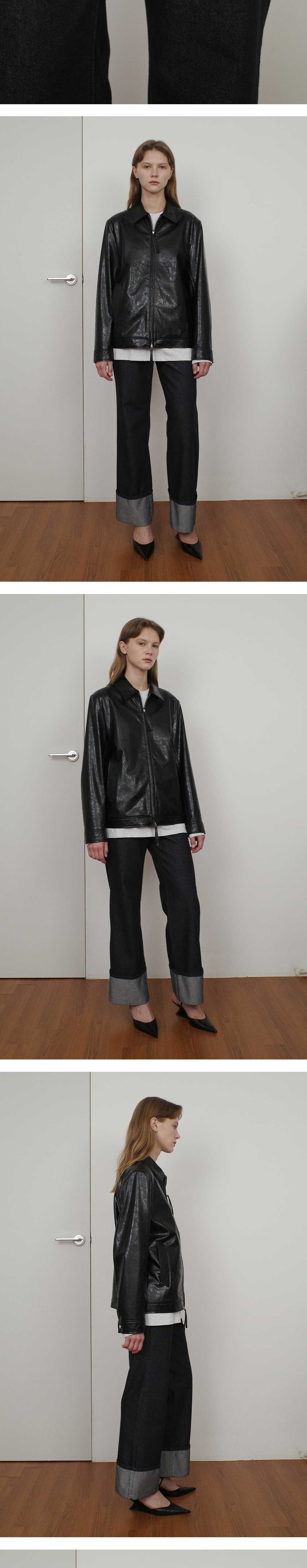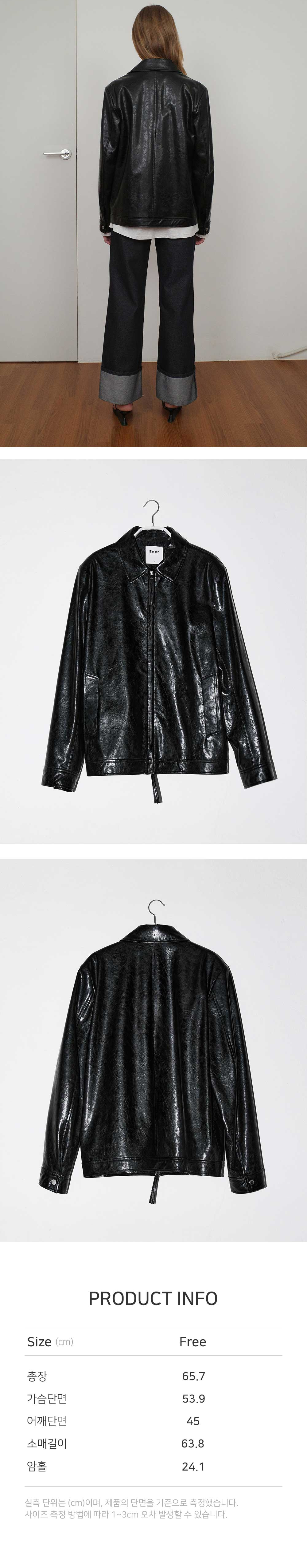 - 은은한 광택이 고급스러운 스탠 카라 비건 레더 자켓입니다. - 어깨 패드가 내장되어 있어 형태감이 무너지지 않고, 깔끔한 라인을 유지하여 완성도를 높였습니다. - 여유 있는 실루엣으로 편안하면서도 스타일리시한 착용감을 선사하며, 투웨이 지퍼를 사용해 다양한 스타일로 연출할 수 있습니다.