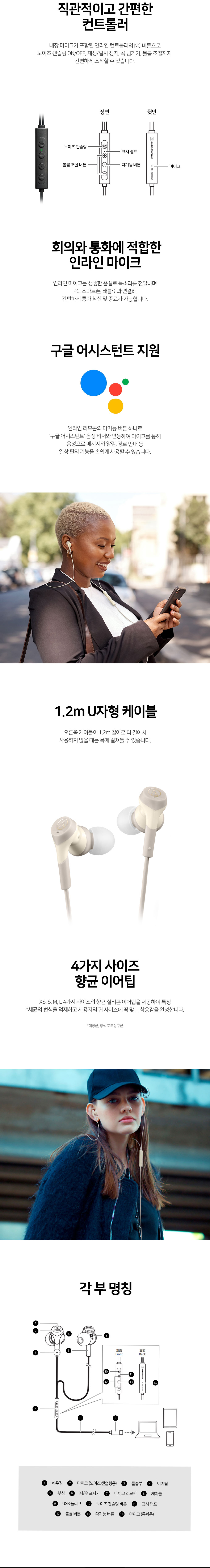 오디오테크니카 공식수입원 ATH-CKS330NC 노이즈캔슬링 C타입 인이어 이어폰 블랙