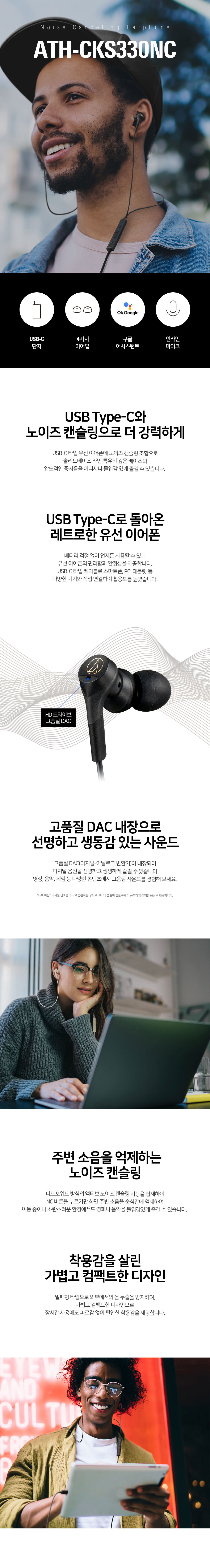 오디오테크니카 공식수입원 ATH-CKS330NC 노이즈캔슬링 C타입 인이어 이어폰 베이지