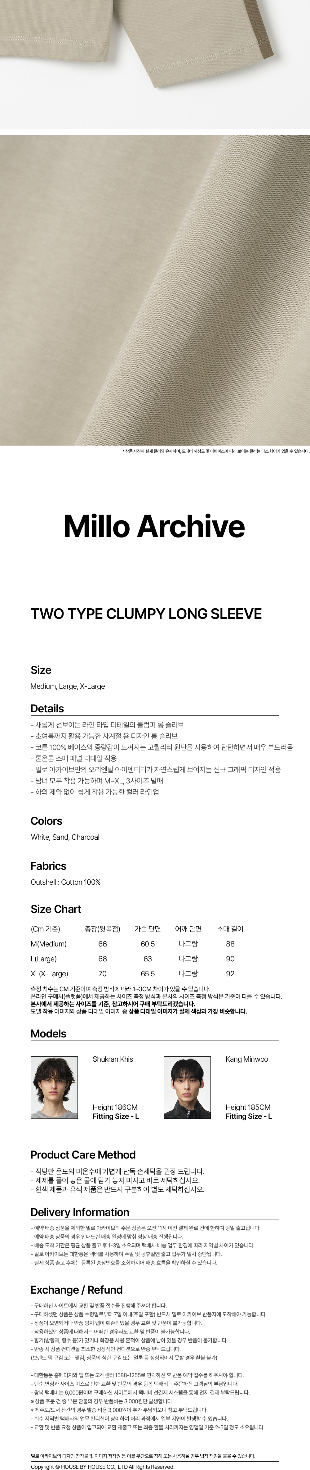 밀로 아카이브 투 타입 클럼피 롱 슬리브 샌드