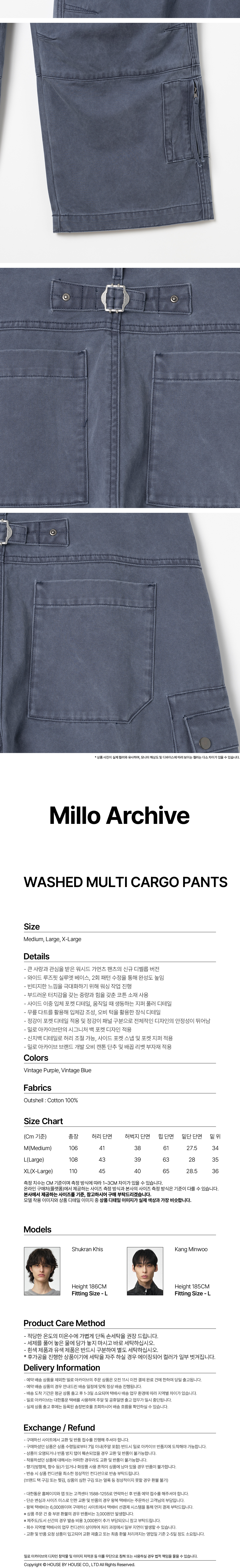 밀로 아카이브 워시드 멀티 카고 팬츠 빈티지 블루