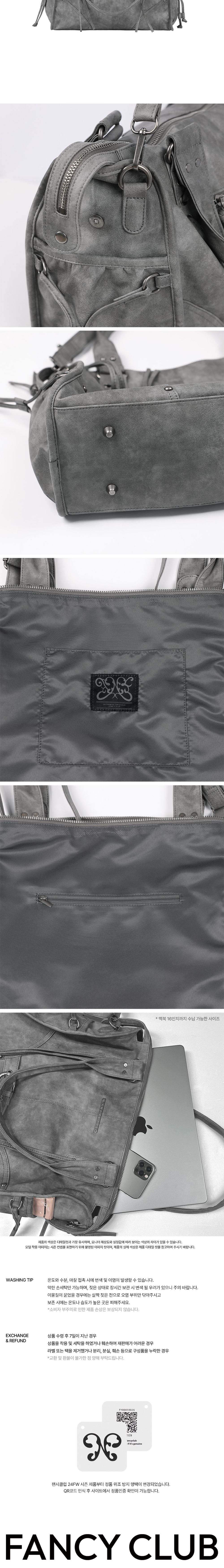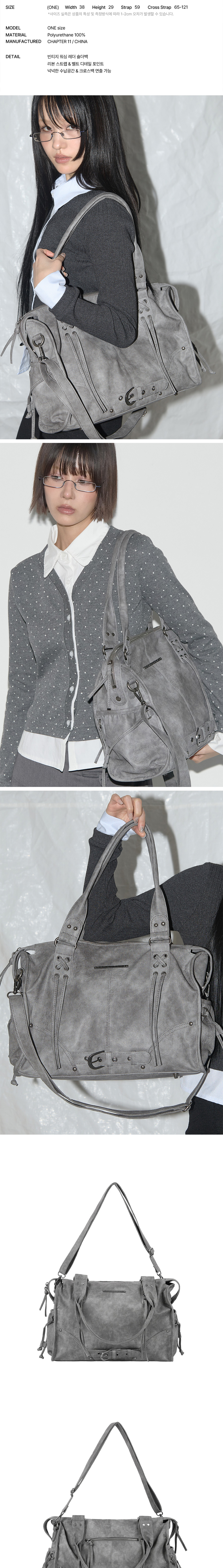 팬시클럽 벨티드 워싱 레더백 그레이