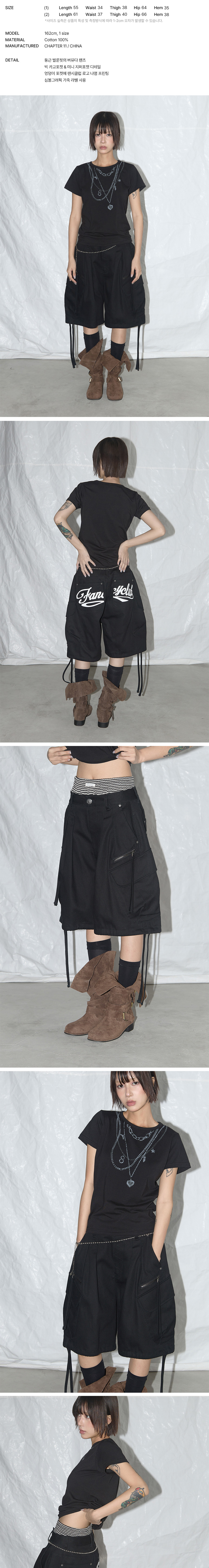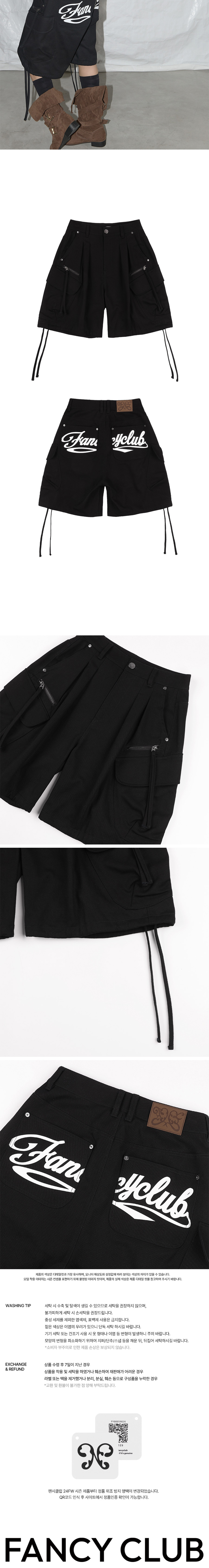 팬시클럽 카고 레터링 버뮤다 팬츠 블랙