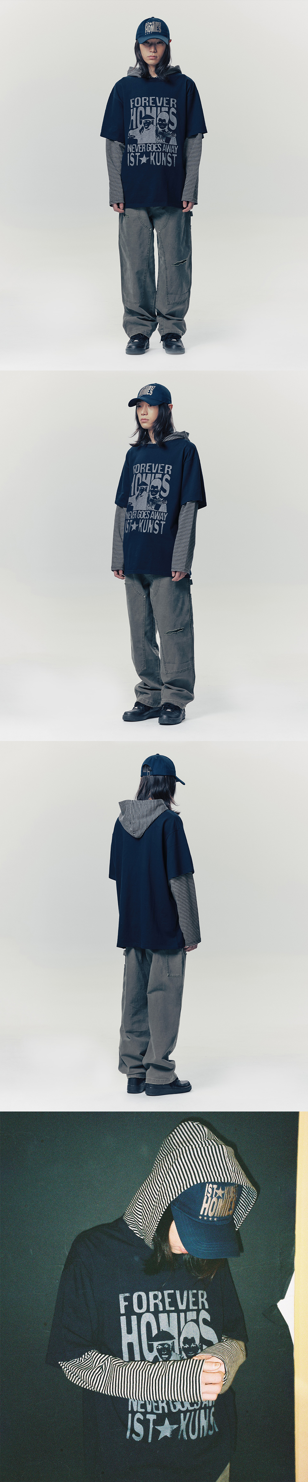 이스트쿤스트 포에버 호미즈 레이어드 롱슬리브 티셔츠 네이비