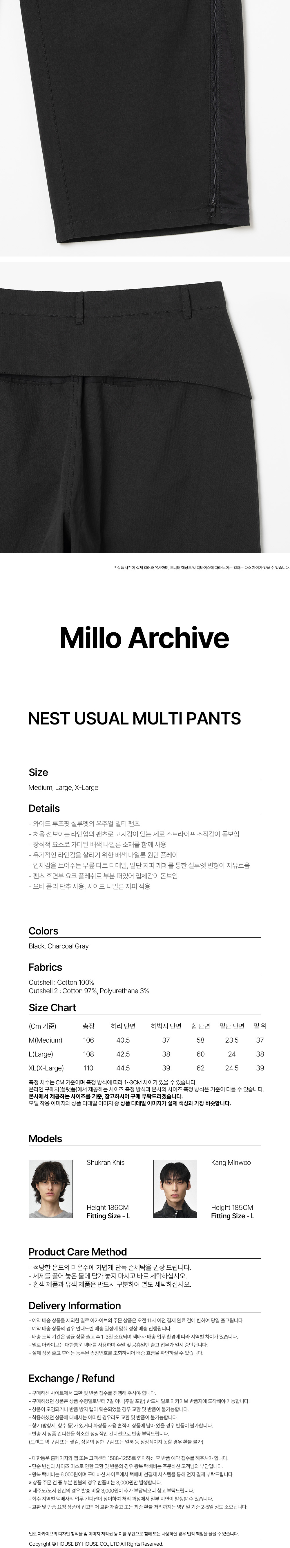 밀로 아카이브 네스트 유주얼 멀티 팬츠 블랙