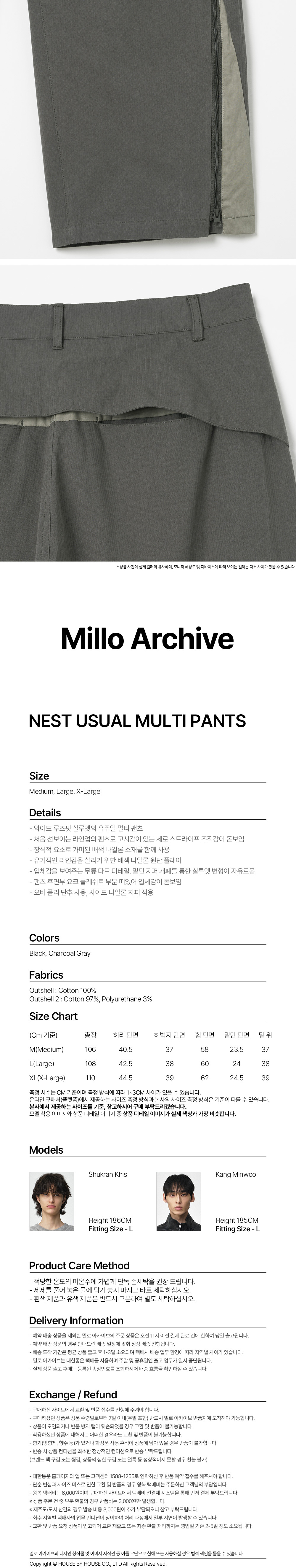 밀로 아카이브 네스트 유주얼 멀티 팬츠 차콜 그레이