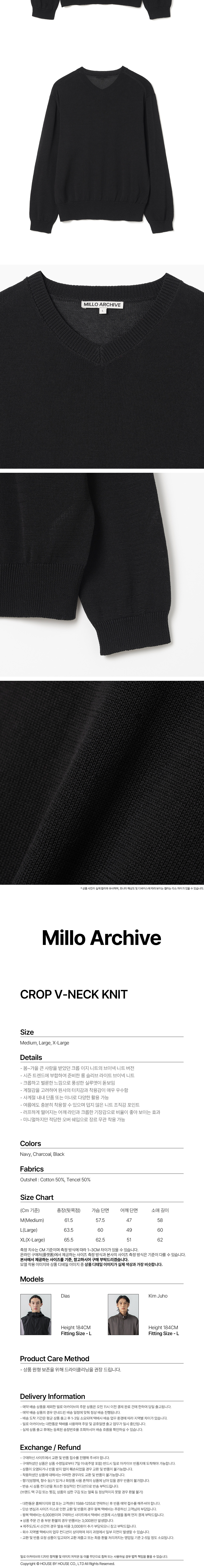 밀로 아카이브 크롭 브이넥 니트 블랙