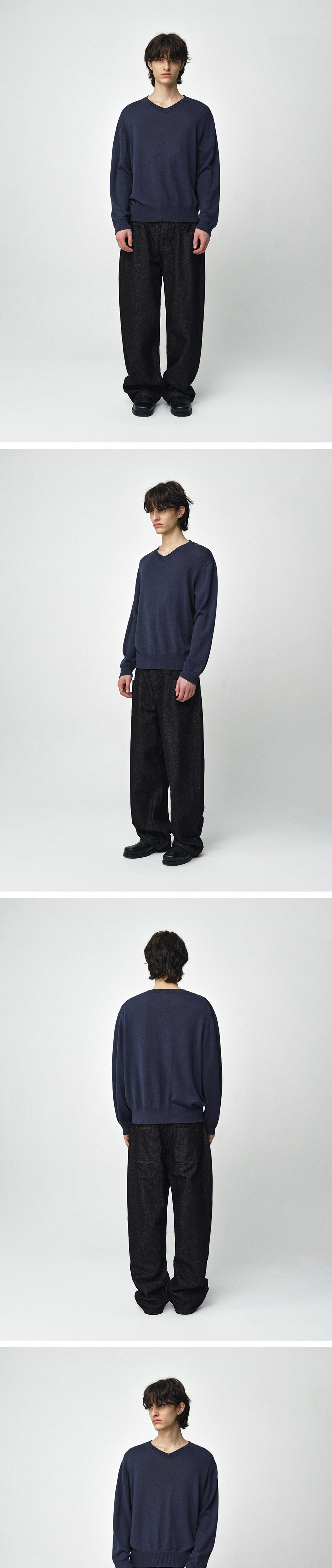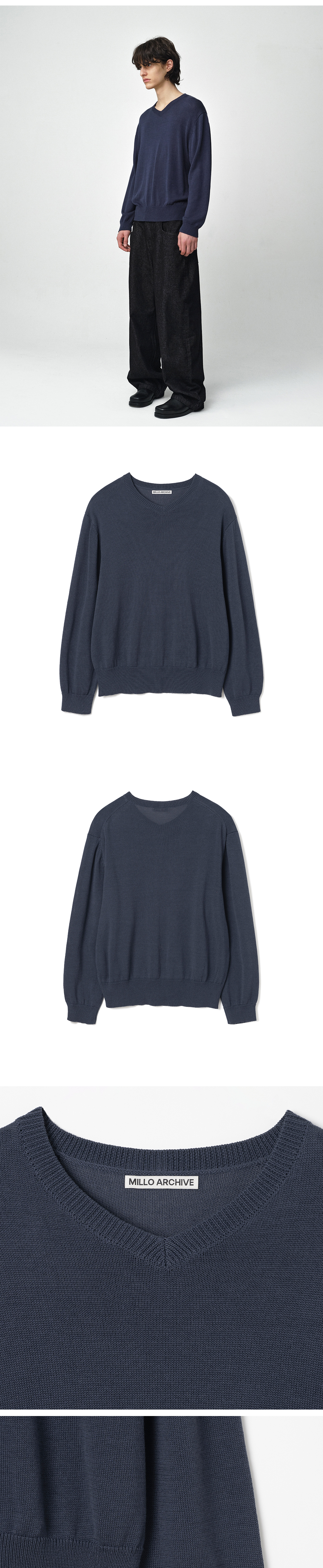 밀로 아카이브 크롭 브이넥 니트 네이비
