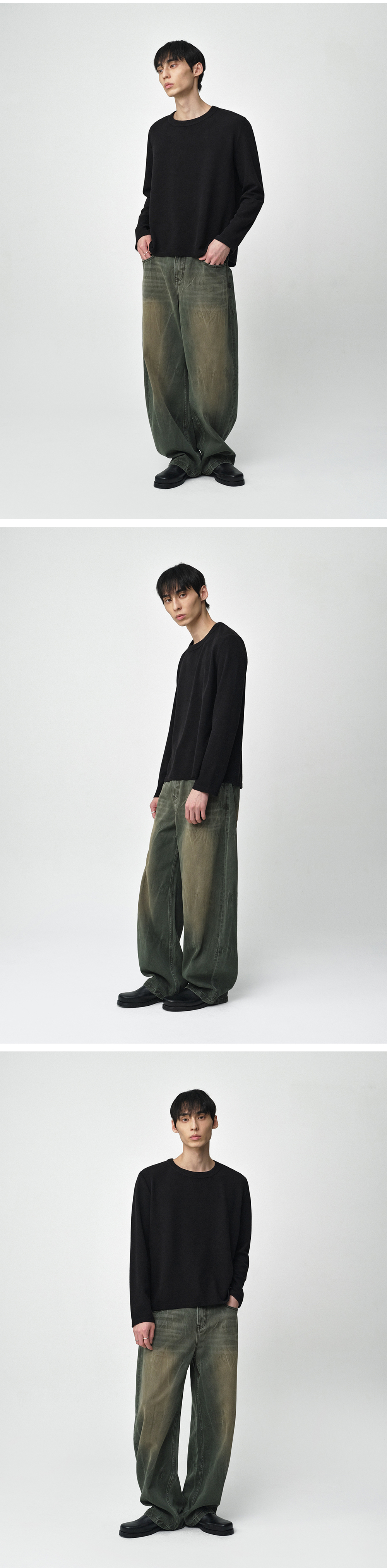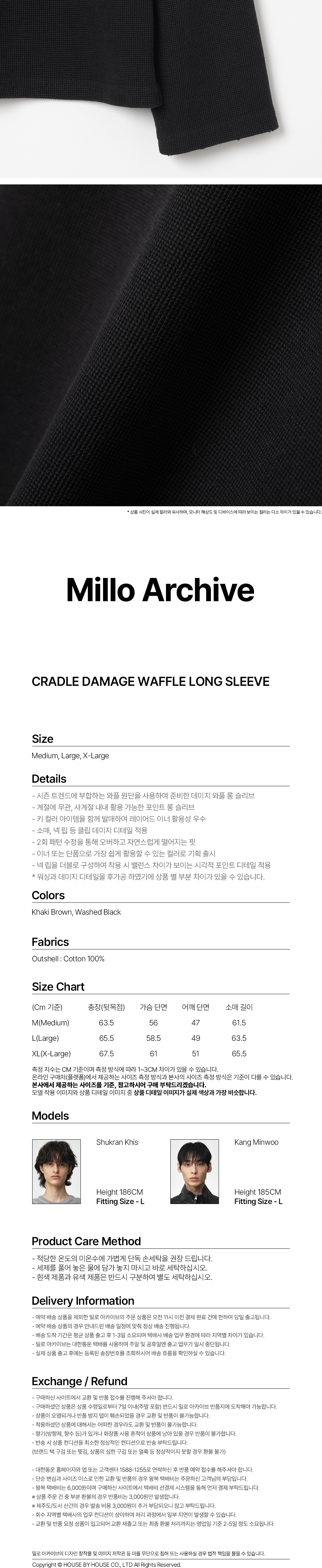밀로 아카이브 크레이들 데미지 와플 롱 슬리브 워시드 블랙