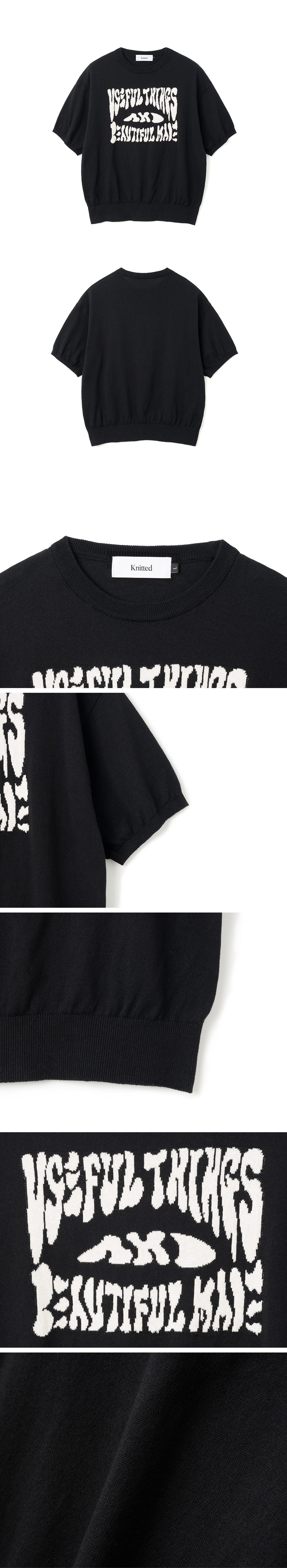 니티드 코튼 자카드 하프 니트 블랙