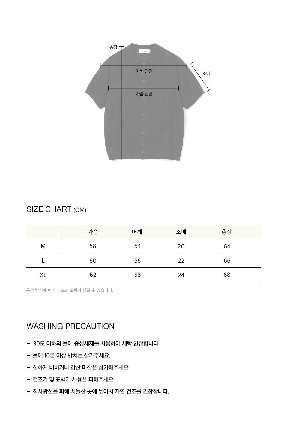 측정 방법에 따라 사이즈에 일부 오차가 있을 수 있습니다.