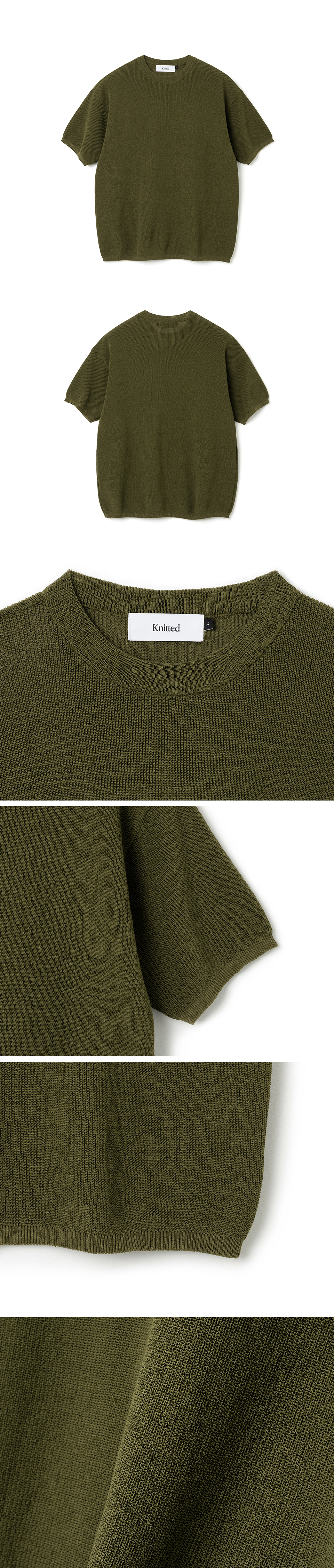 니티드 쿨에버 라운드 반팔 니트티 올리브