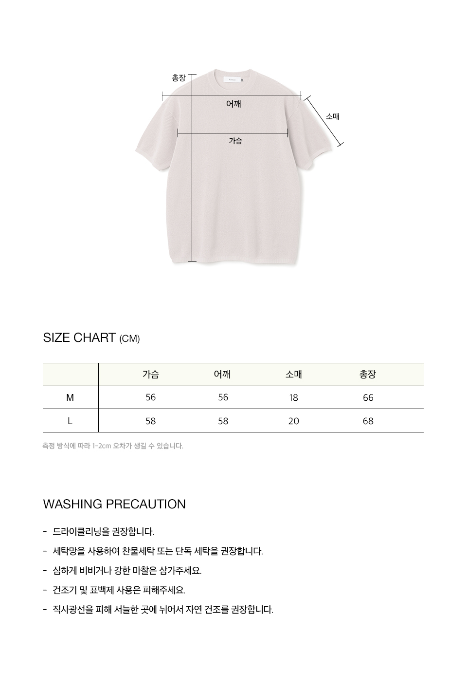 측정 방법에 따라 사이즈에 일부 오차가 있을 수 있습니다.
