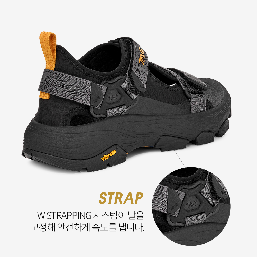 여름 등산을 계획한다면 그랜드뷰 맥스 샌들을 제안합니다. 그랜드뷰 등산화를 샌들 타입으로 재해석한 모델로, 습기 제거 소재를 사용해 더운 날씨에도 발이 쾌적하게 유지됩니다. 측면의 머드가드와 내구성 뛰어난 비브람 메가 그립 아웃솔이 거친 환경에서도 발을 보호해 주며, W STRAPPING 시스템이 발을 안정적으로 잡아줘 과감한 하이킹을 즐기기에 적합합니다.