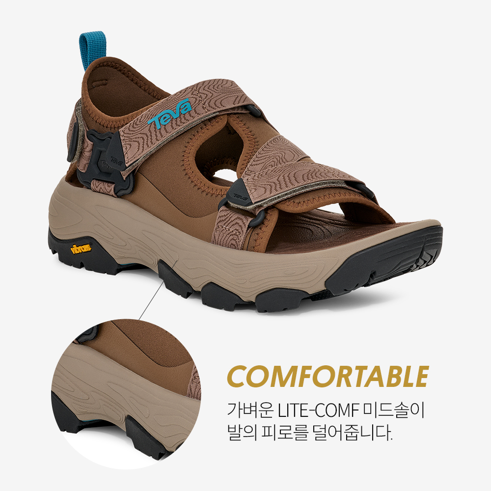 여름 등산을 계획한다면 그랜드뷰 맥스 샌들을 제안합니다. 그랜드뷰 등산화를 샌들 타입으로 재해석한 모델로, 습기 제거 소재를 사용해 더운 날씨에도 발이 쾌적하게 유지됩니다. 측면의 머드가드와 내구성 뛰어난 비브람 메가 그립 아웃솔이 거친 환경에서도 발을 보호해 주며, W STRAPPING 시스템이 발을 안정적으로 잡아줘 과감한 하이킹을 즐기기에 적합합니다.