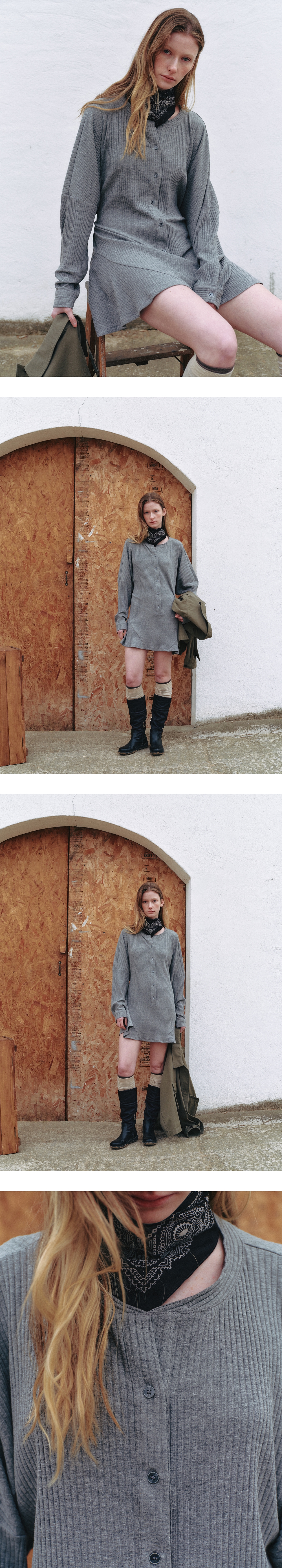 밑단 절개와 헨리넥 디자인으로 완성도를 높인 골지 미니 원피스입니다. 코튼모달 소재로 부드럽고 편안한 착용감을 주며, 스트링이 있어 다양한 실루엣을 연출할 수 있습니다. 어느 하의에나 잘어울리는 아이템으로 단독으로도 착용이 가능하며 활용도가 높은 아이템입니다.