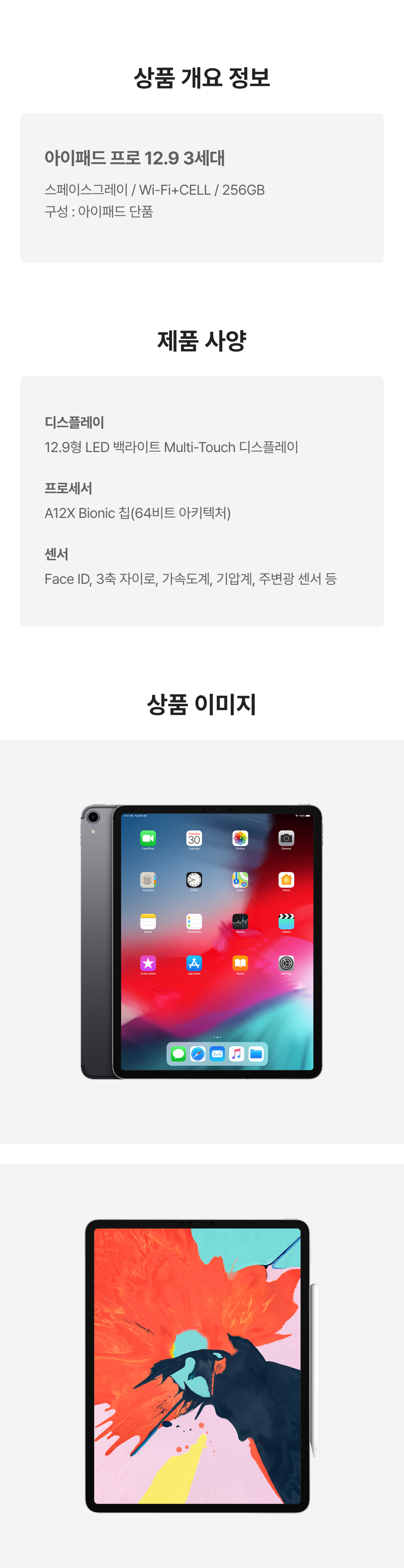 [B등급] 리퍼비시 아이패드 프로 12.9 3세대 wifi+cellular A12X Bionic 256기가 스페이스그레이