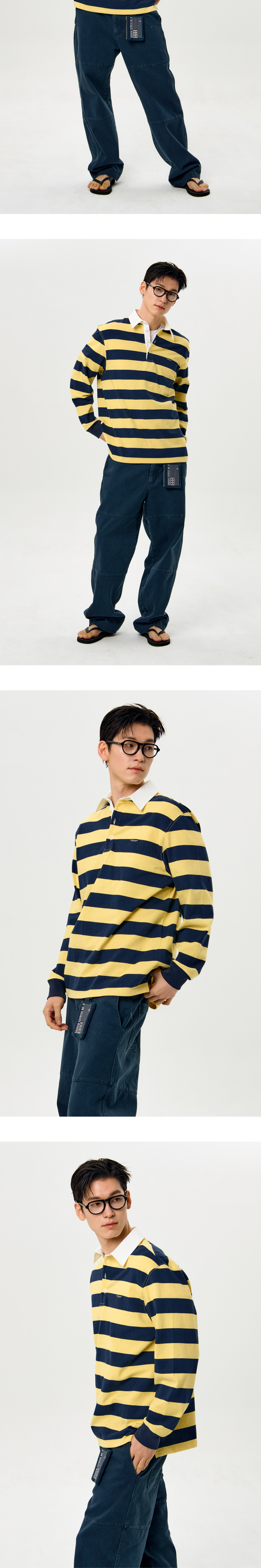 가든익스프레스 볼드 스트라이프 럭비 티셔츠 옐로 믹스