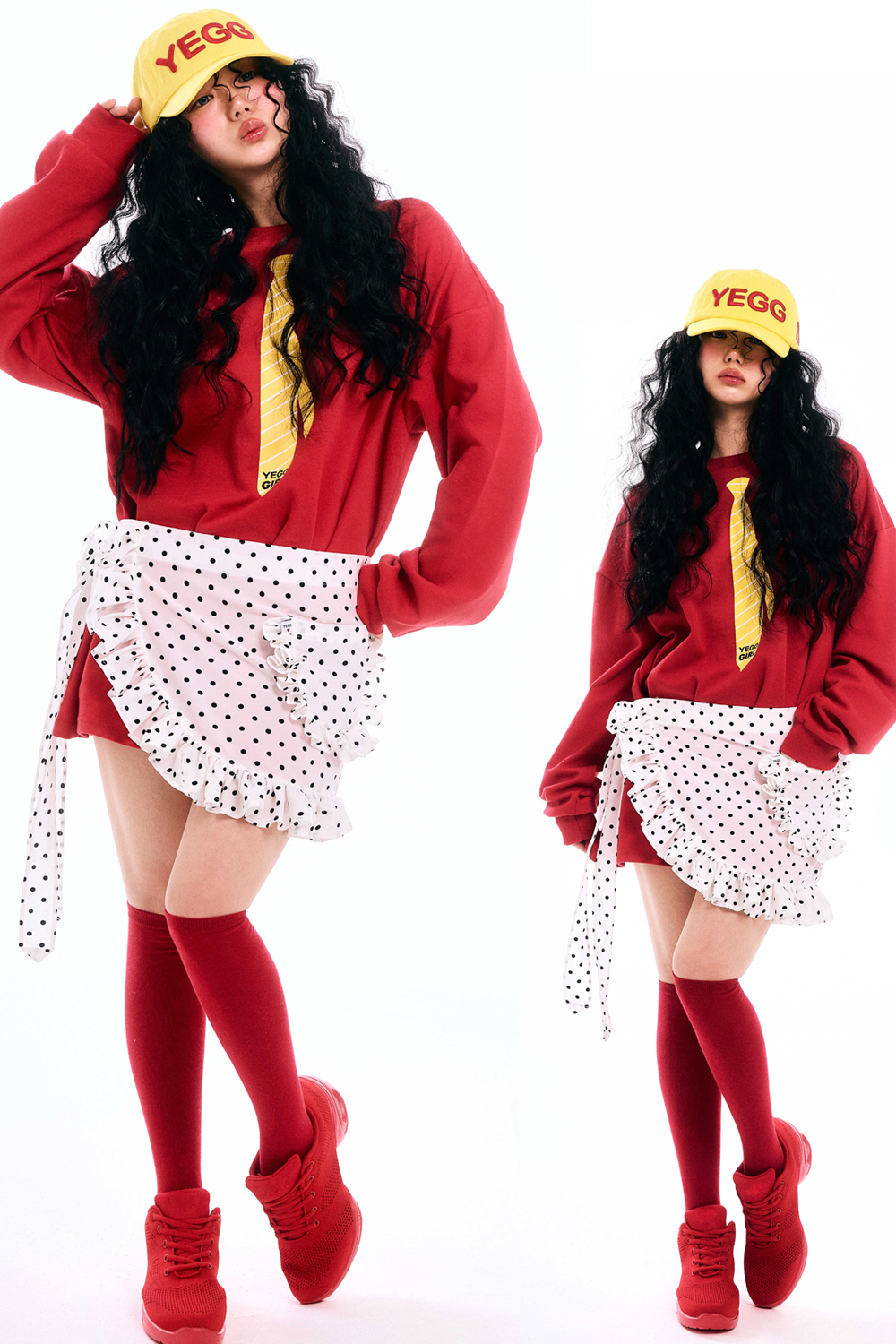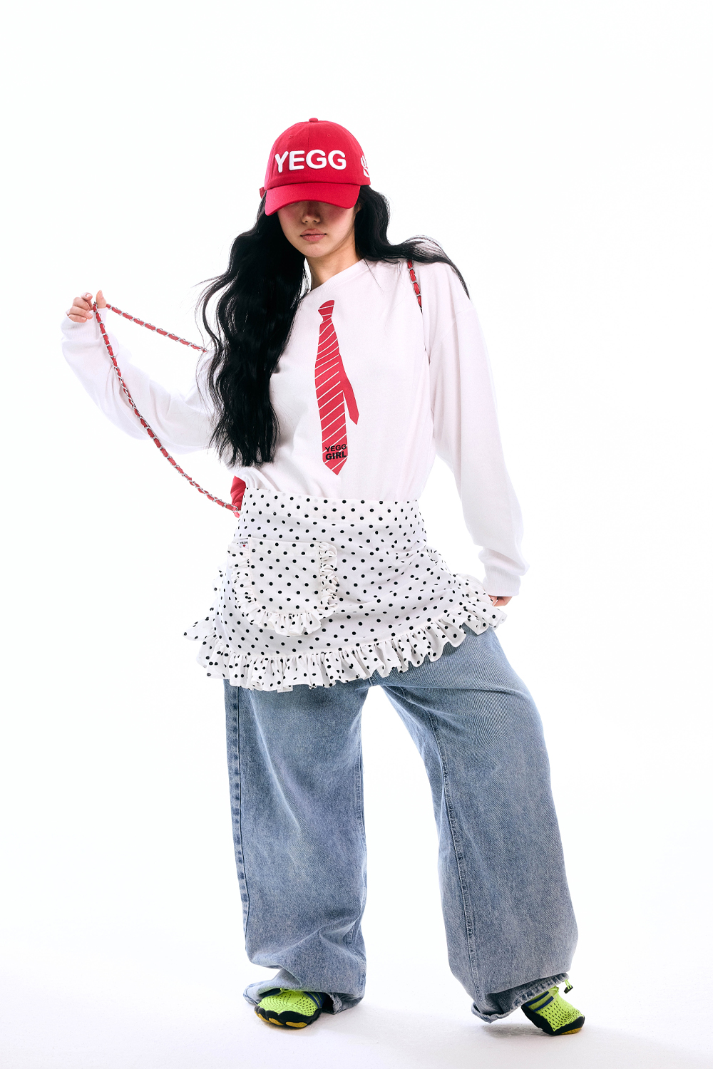 도트 패턴과 프릴 디테일, 여성스러우면서도 키치한, 활용도가 높은 아이템 입니다. 레이어드 스타일링에 최적화 된 상품입니다
