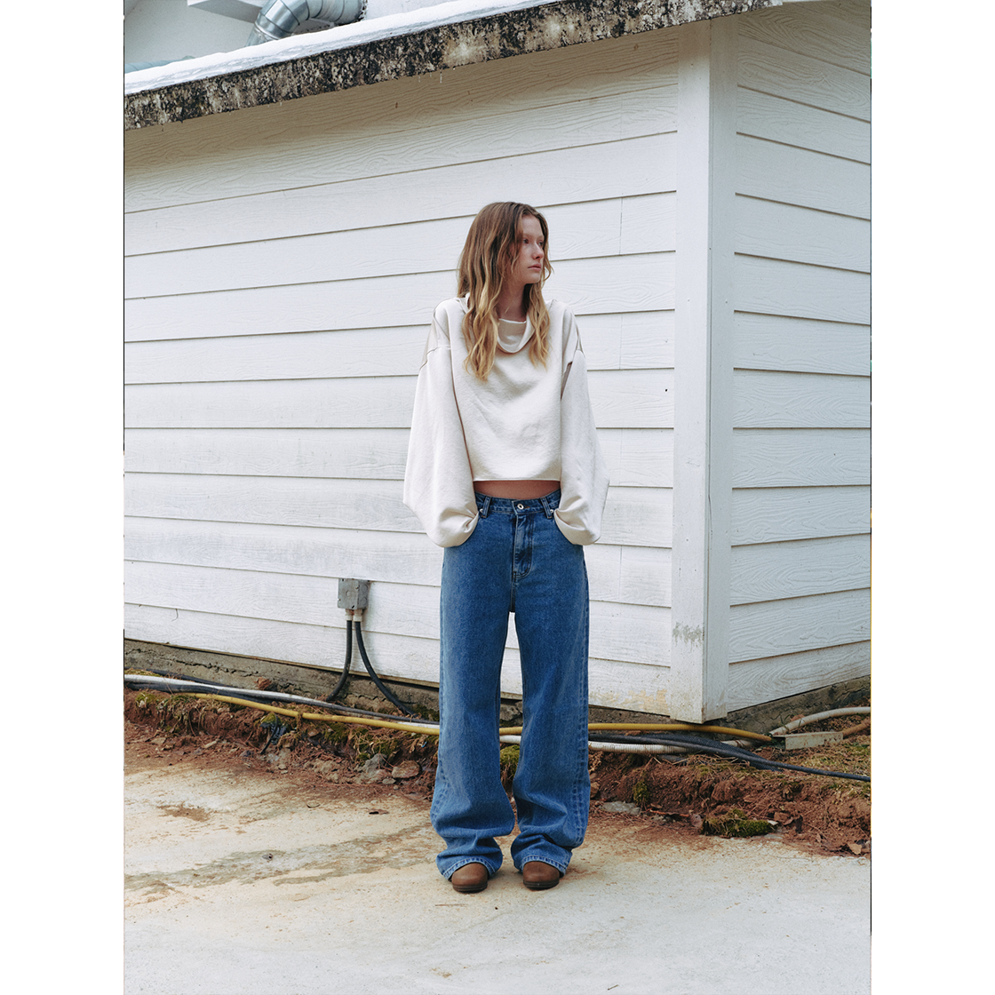 깔끔하게 떨어지는 실루엣의 베이직한 스트레이트핏 데님 팬츠입니다. 12.5온스의 기본 무지 소재로 가볍고 부드러운 터치감이 특징이며 가 먼트워싱을 통해 부드러운 착용감과 옷의 변형을 최소화했습니다. 로고 각인된 니켈 무광 스냅과 YKK 지퍼가 사용되었으며 로고 음각 소가죽 패치가 포인트입니다.