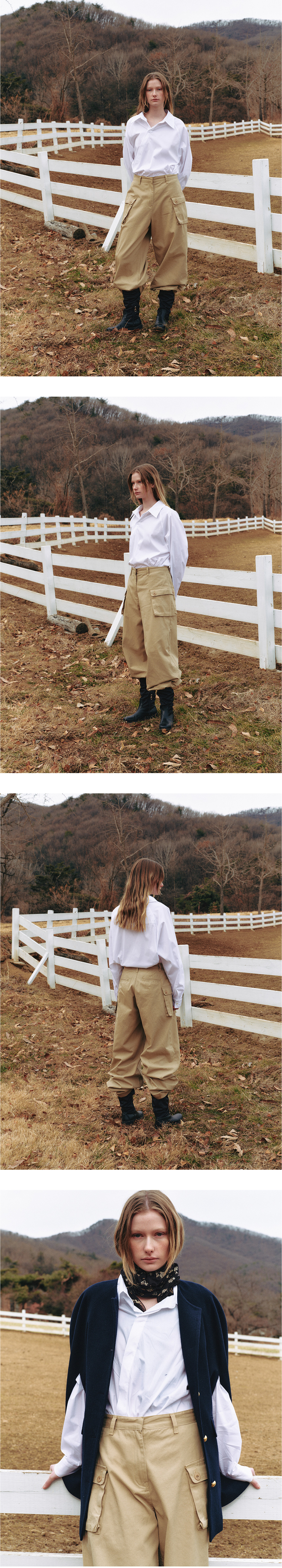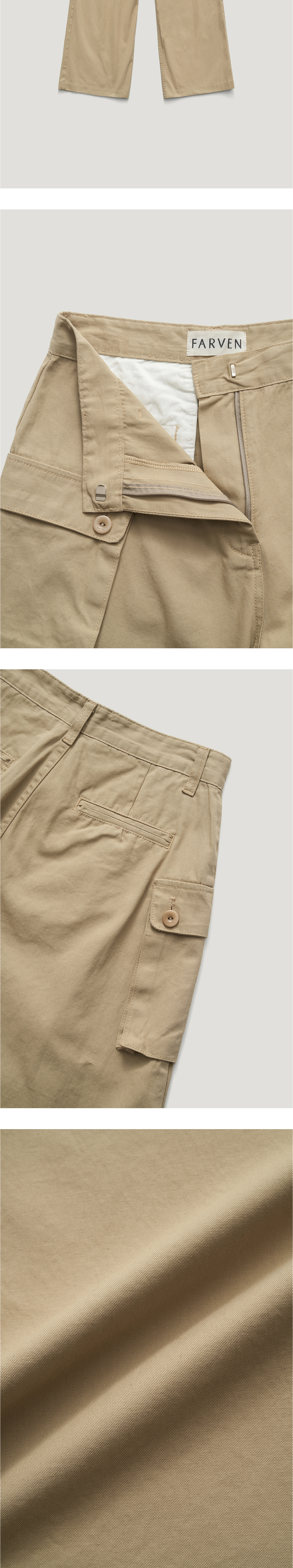 코튼 100% 소재의 원단으로 만든 여유로운 카고 팬츠입니다. 사이드 포켓 대신 양쪽에 입체적인 플랩포켓이 있으며 팬츠와 동일한 색상으로 염색한 너트 단추와 YKK 지퍼 여밈 구조로 완성도를 높였습니다. 빈티지한 무드가 느껴지는 베이지 컬러와 깔끔한 아이보리 컬러로 심플한 셔츠나 티셔츠와도 매치하기 좋은 팬츠입 니다. *너트 단추는 물에 반응하는 개체이므로 세탁시 이염 방지를 위한 단독세탁 및 자연건조 필수입니다. 드라이클리닝시 호일로 단추를 감싸주시길 권장합니다. 건조기 사용시 깨짐, 갈라짐 현상이 발생할 수 있으니 건조기 사용은 불가합니다.