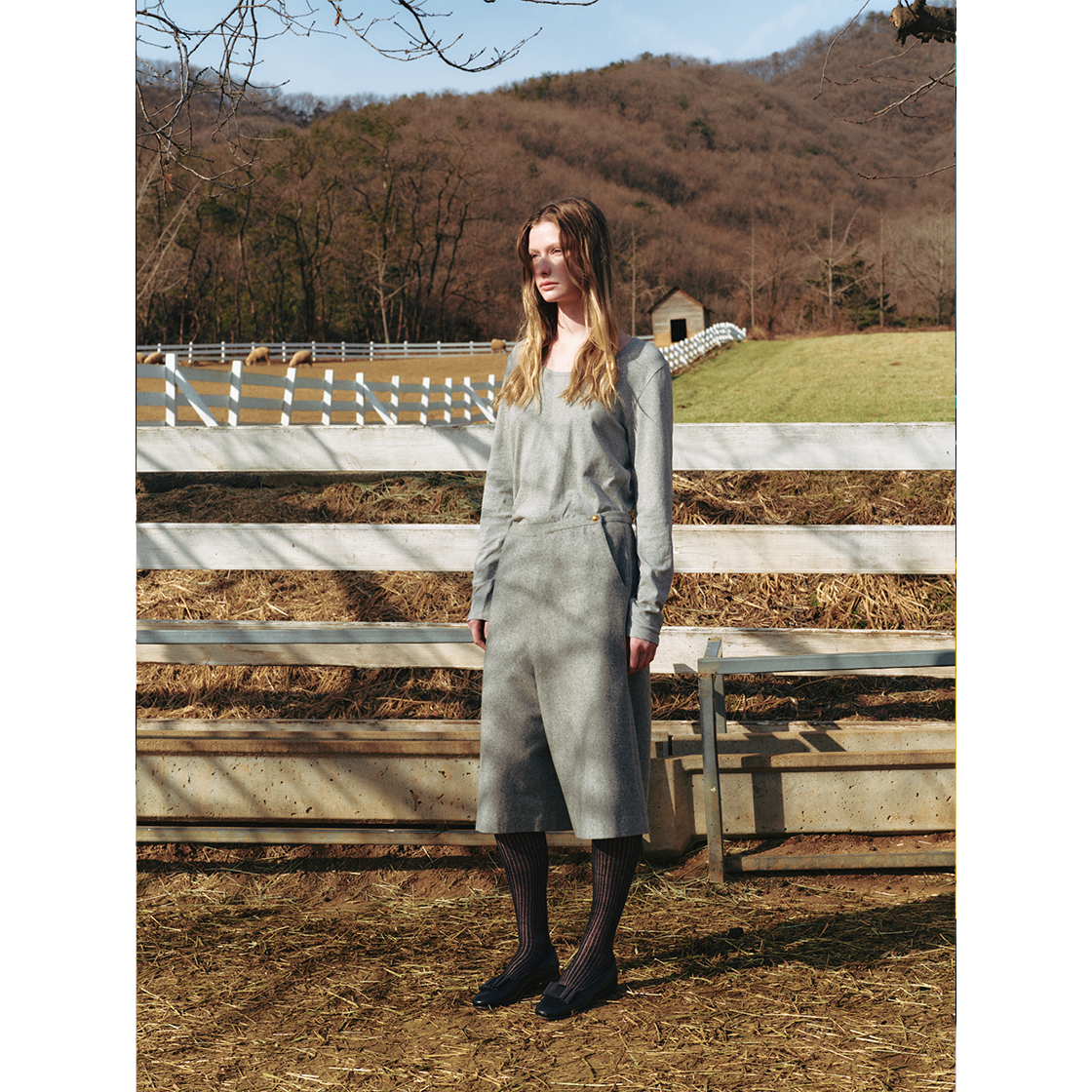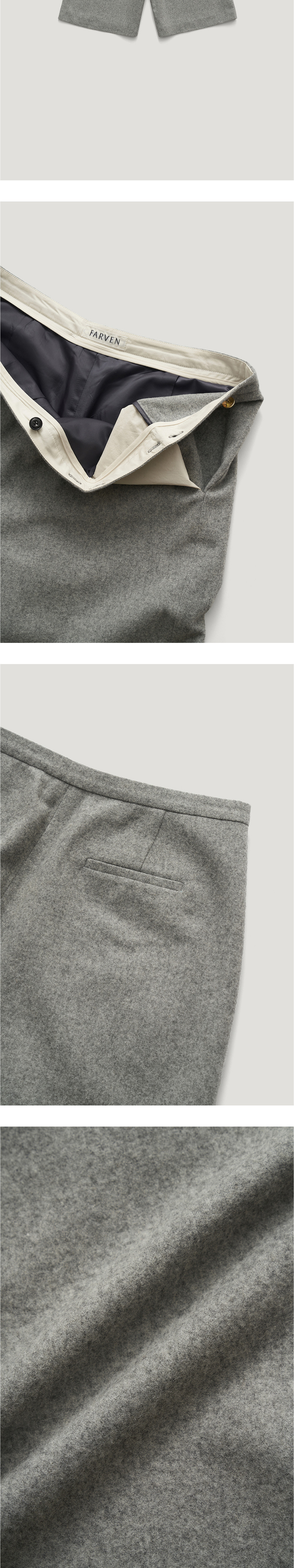 무릎을 덮는 기장감으로 클래식하면서 캐주얼한 무드의 버뮤다팬츠입니다. 울과 폴리 혼방의 블렌디드 소재를 사용해 부드러운 터칭이 특징입니다. 왼쪽 허리부 분에 트임분량을 넣어 코튼소재로 포인트를 주었으며 버튼을 사용하여 다양한 스 타일링이 가능합니다. 앞 여밈에는 24K 골드 컬러가 매력적인 버튼 디테일이 있 습니다. COTTAGE WOOL CAPE_GRAY 제품과 셋업으로 착용이 가능합니다.