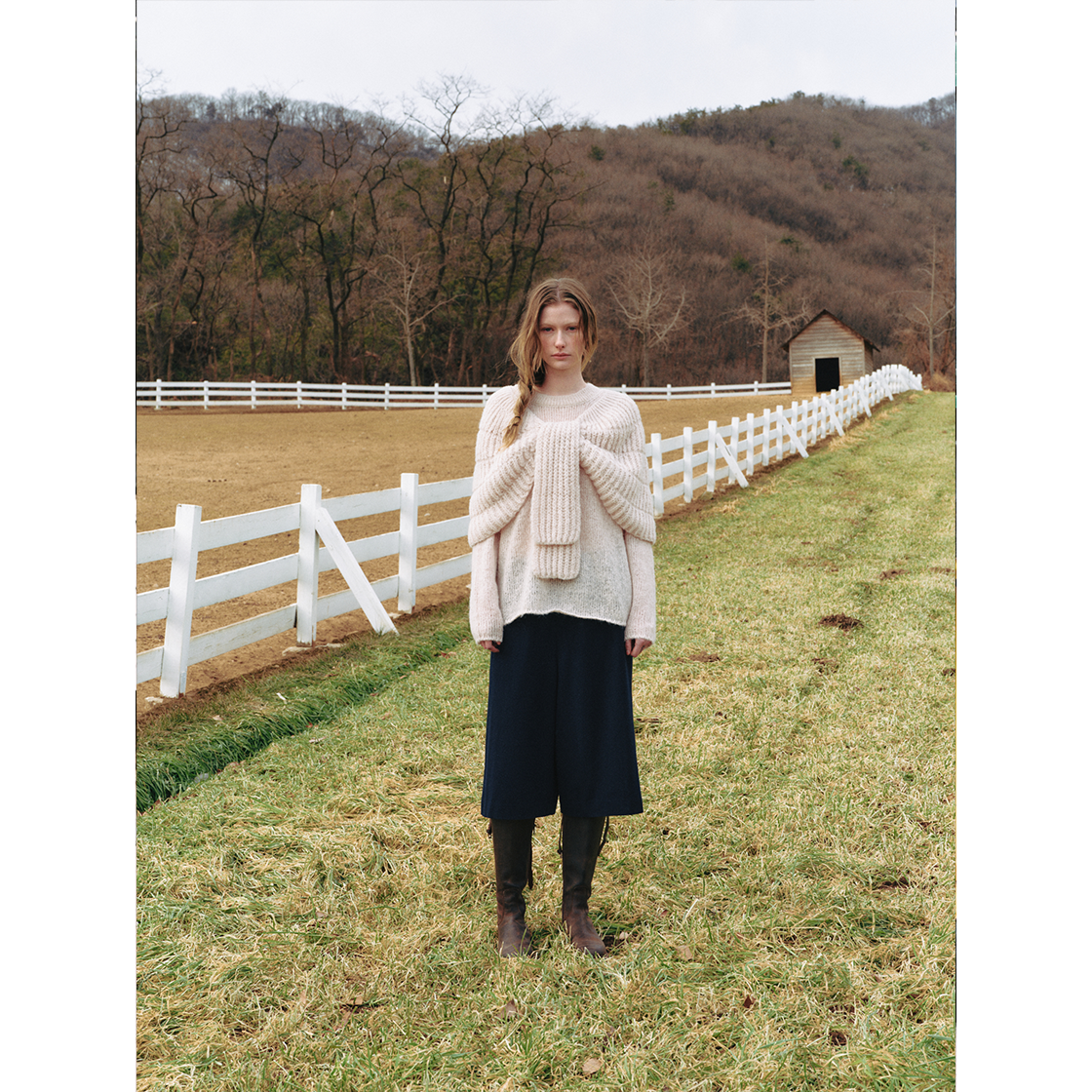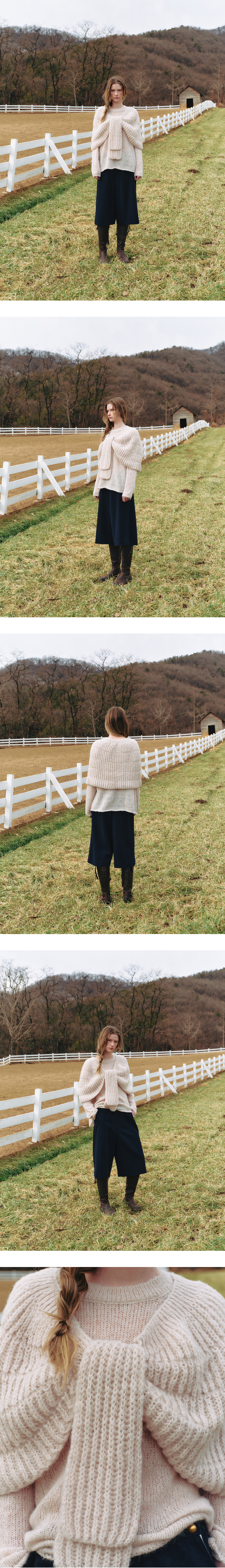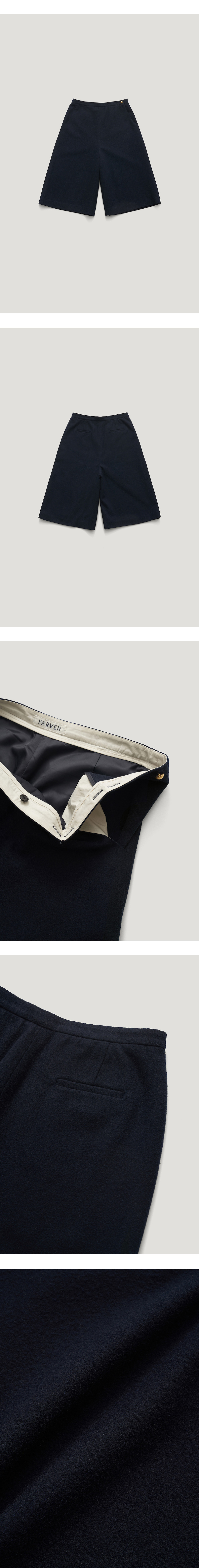 무릎을 덮는 기장감으로 클래식하면서 캐주얼한 무드의 버뮤다팬츠입니다. 울과 폴리 혼방의 블렌디드 소재를 사용해 부드러운 터칭이 특징입니다. 왼쪽 허리부 분에 트임분량을 넣어 코튼소재로 포인트를 주었으며 버튼을 사용하여 다양한 스 타일링이 가능합니다. 앞 여밈에는 24K 골드 컬러가 매력적인 버튼 디테일이 있 습니다. COTTAGE WOOL CAPE_NAVY 제품과 셋업으로 착용이 가능합니다.