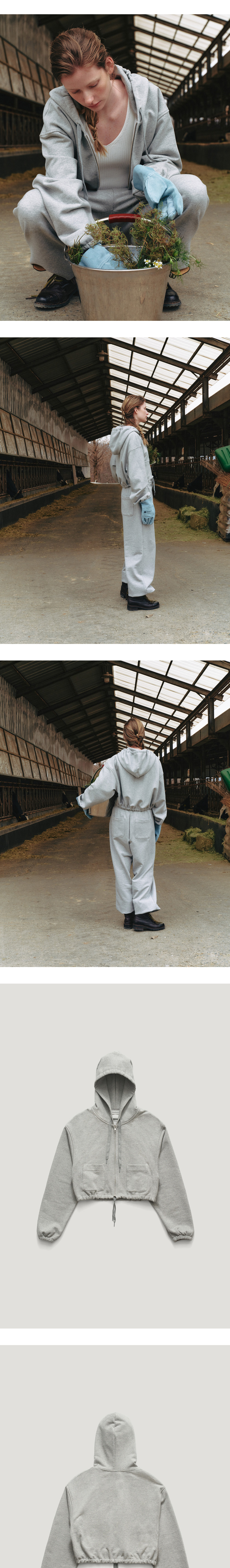 부드럽고 탄탄한 소재감이 특징인 베이직한 디자인의 후드집업입니다. 여유 로운 실루엣과 쇼트한 기장감이 특징이며 앞판에 두개의 아웃포켓이 더해져 실용성까지 고려한 데일리한 제품입니다. 넥 라인과 밑단, 두 군데에 스트링 디테일이 있어 다양한 스타일링이 가능하며 후드 스트링 터널에 파르벵 로고 자수 디테일이 있습니다. 계절에 상관없이 언제나 활용 가능한 시즌 리스 아이템입니다. ORCHARD JOGGER PANTS_GRAY 제품과 셋업으로 착용이 가능합니다.