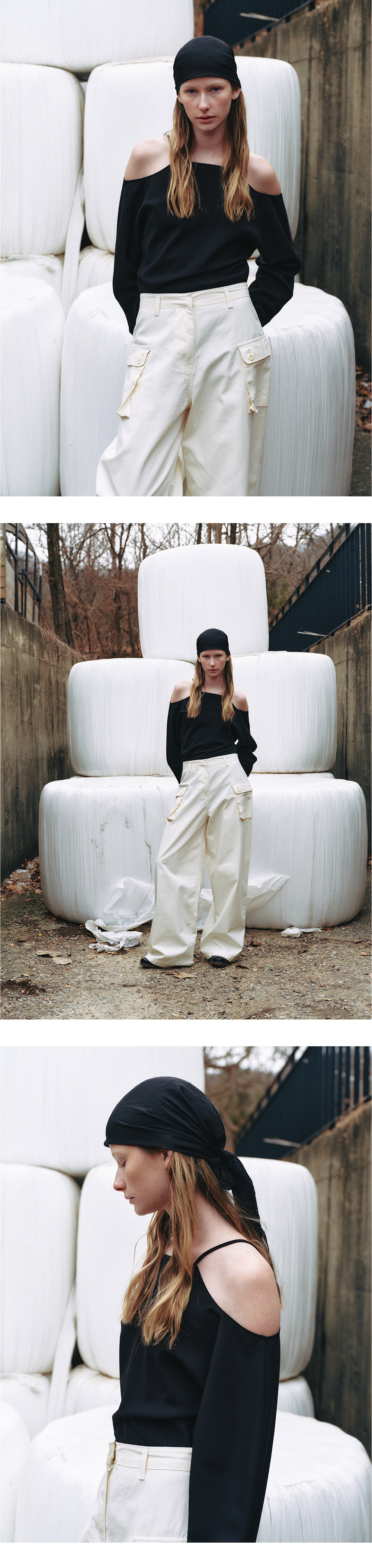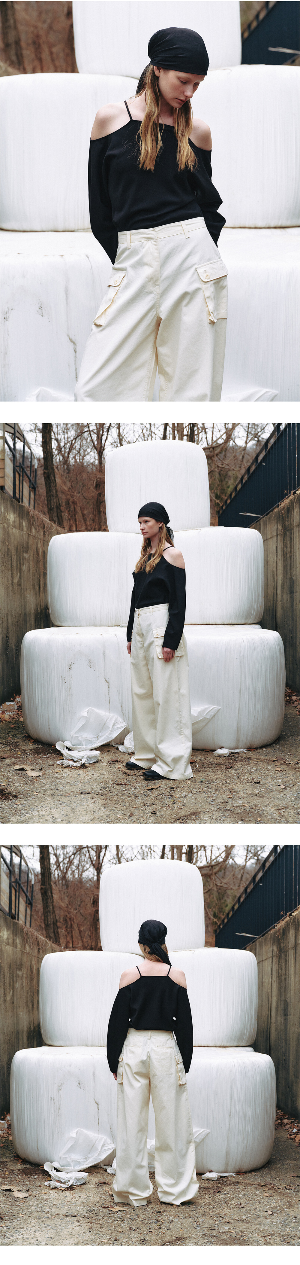 유연한 원단을 사용하여 편안하게 착용 가능한 오프숄더 블라우스입니다. 어깨라인을 드러내는 디자인으로 전체적으로 불편하게 붙지 않으며 허리 라인을 살짝 잡아주었습니다. 기장감이 짧지 않아 팬츠는 물론 쇼츠, 스커 트 등 다양한 하의에 매치하기 좋으며 캐주얼하게 혹은 클래식한 무드로 연출 가능합니다.